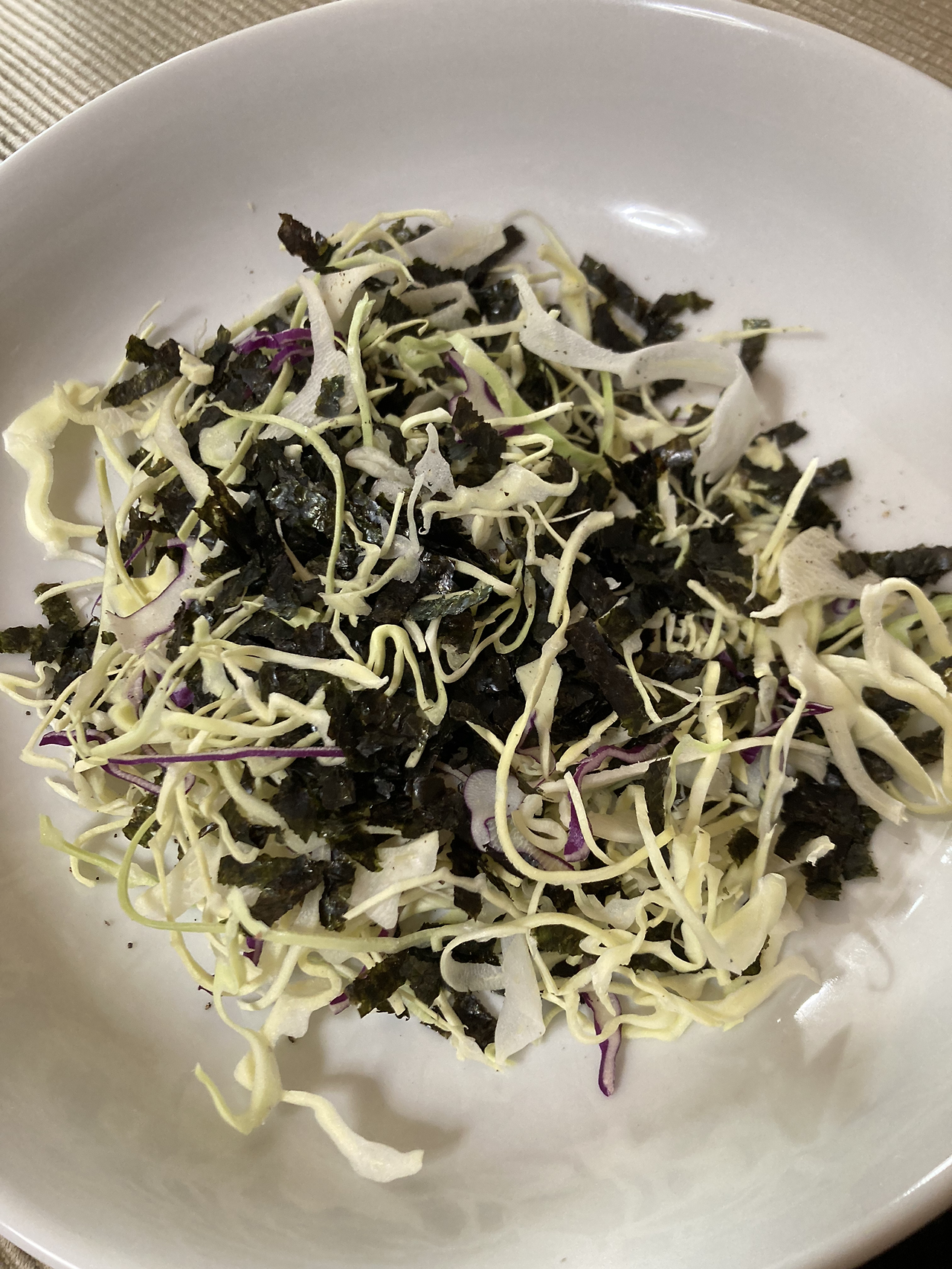 저속노화 동네에서 유행하는 김 양배추 샐러드를 해 보았다.