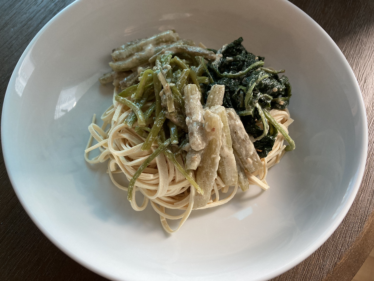 두부면을 알게 된 후 면을 삶는 노동에서 벗어났다. 맛은 좀 아쉽지만 물 끓이지 않고 바로 면요리를 먹을 수 있다는 것만으로 모든 것을 양보할 수 있다. 곤약면, 해초면, 두유면 다 먹어봤는데 나는 두부면으로 정착했다.