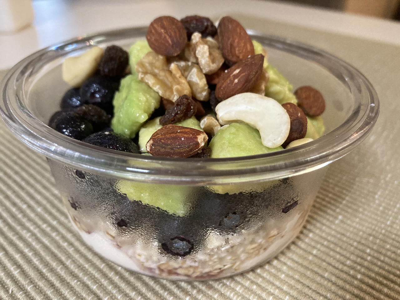 하룻밤 지나면 사실 좀 개죽처럼 된다. 비주얼이 중요하면 바로 먹자. 아보카도만 넣어도 보고 블루베리만도 넣어봤는데 개인적으로는 아보카도보다는 블루베리가 상큼하니 더 맛있었다. 맛은 음, 건강한 맛이다. 하핫.