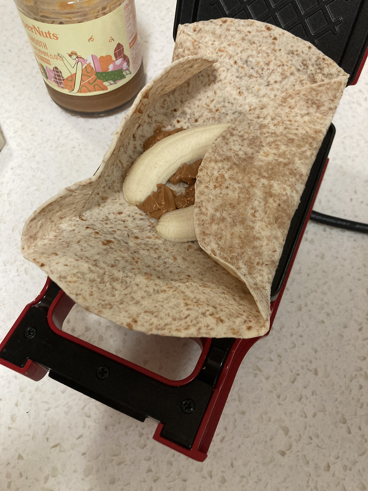 당근에서 샌드위치 메이커를 저렴한 가격에 샀다. 가끔 바삭한 토스트를 먹고 싶을 때가 있었는데, 이제 식빵 한 장 구울 수도 있고 핫샌드위치도 만들 수 있다. 그래서 오늘은 평소보다 조금 귀찮은 바나나 땅콩버터 토스트를 해보기로 한다. 바나나는 보관할 때 나는 냄새가 싫고 껍질 버리는 것도 싫어서 집에 사두지 않는데 오늘 토스트를 위해 특별히 구입했다.