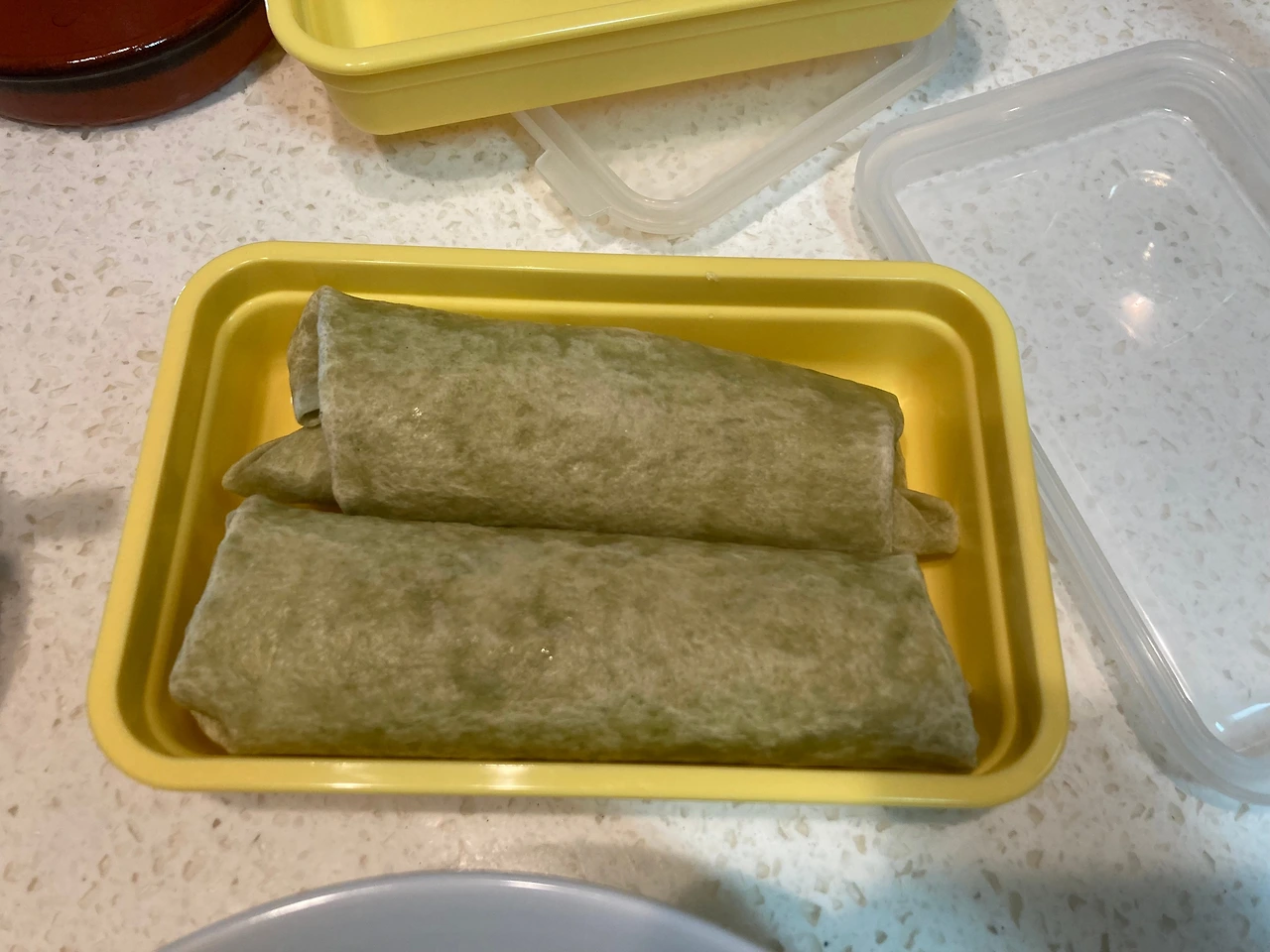 - 보통 또띠아 한 봉지에 5-6개 들었으니, 통에 채워놓으면 마음이 훈훈하다. 소스가 들어가지 않으니 야채가 덜 물러서 좀 더 오래가는 느낌이다. 단, 통밀 또띠아는 냉장고에 넣었다 바로 먹으면 조금 뻣뻣하다.