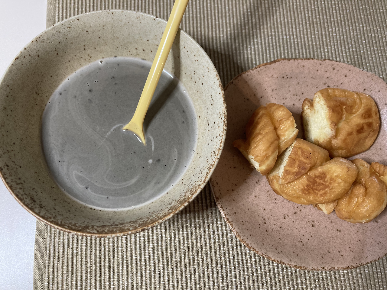 꽈배기만 먹어보면 그다지 맛있다고는 할 수 없다. 밀가루 맛이 나고 속이 부드럽지도 않은데, 그래도 콩국에 말아먹으면 꽤 괜찮다. 맛있으려면 버터와 설탕이 잔뜩 들어가야 할 테니 이대로 만족한다. 사실 콩국에 말아먹는 용으로는 밋밋한 꽈배기가 더 잘 어울린다.