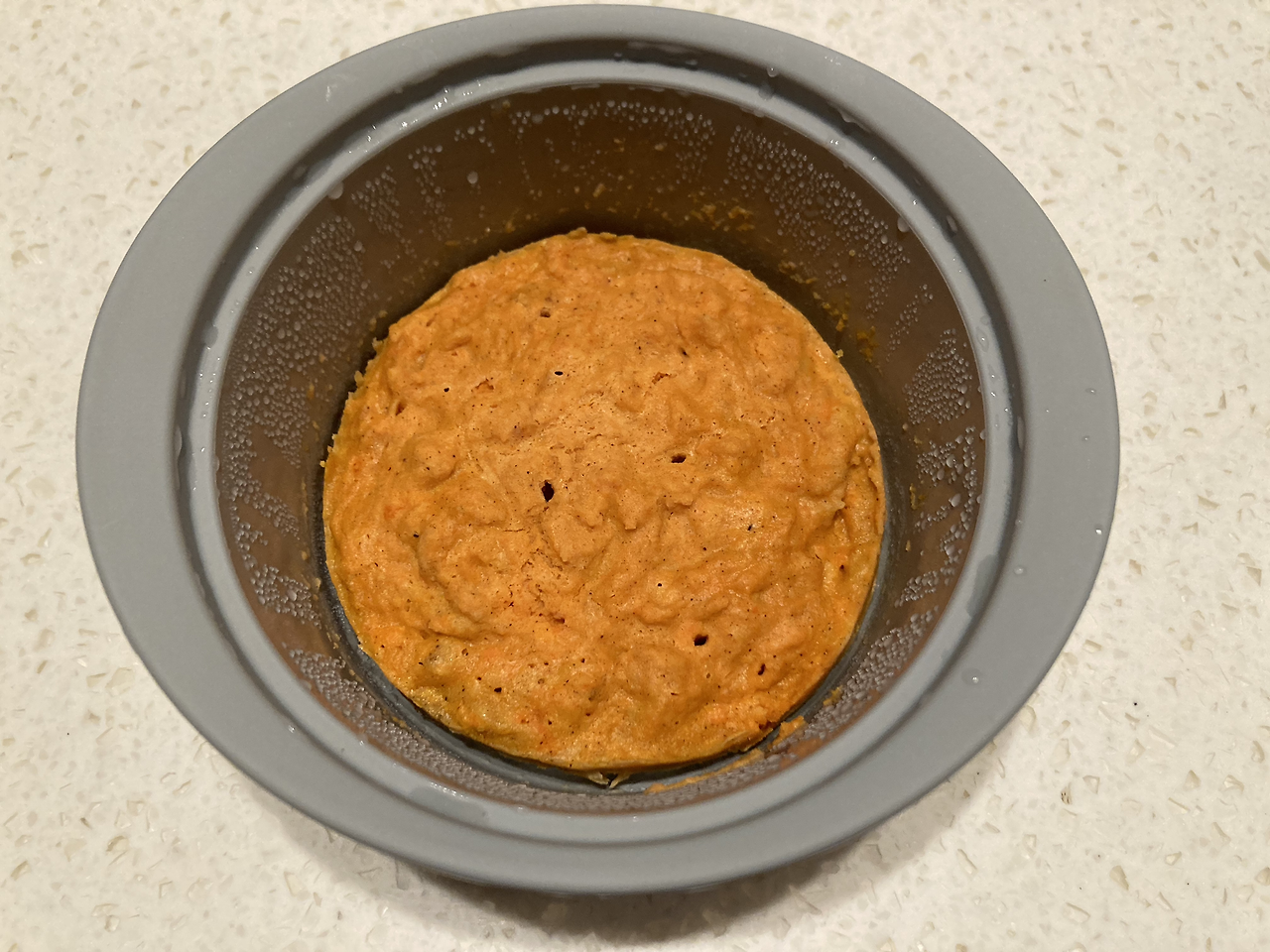 실리콘 찜기에 계란 한 개, 아몬드 파우더 커피계량스푼으로 20g 분량, 당근퓨레 포션 15개, 시나몬 가루 적당히 넣고 (당근퓨레 해동되길 기다렸다가) 잘 섞는다.