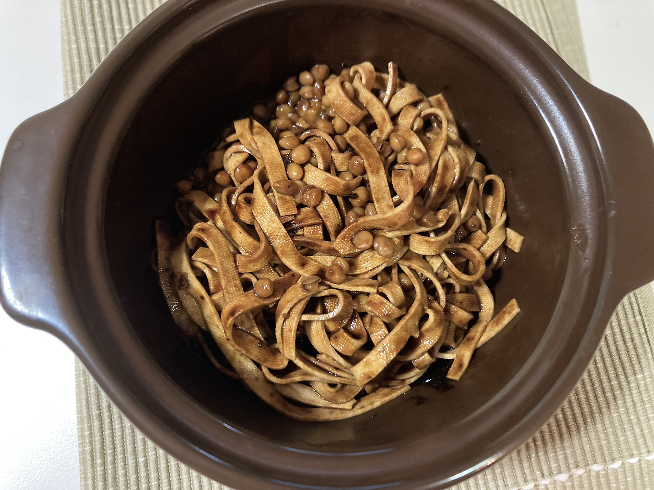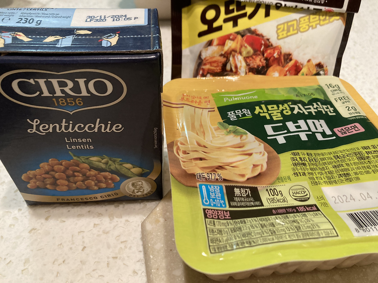 평소에는 두부면에 양배추채와 짜장가루만 넣어 레인지에 돌려먹기도 하는데, 오늘은 렌틸콩을 넣어보았다.