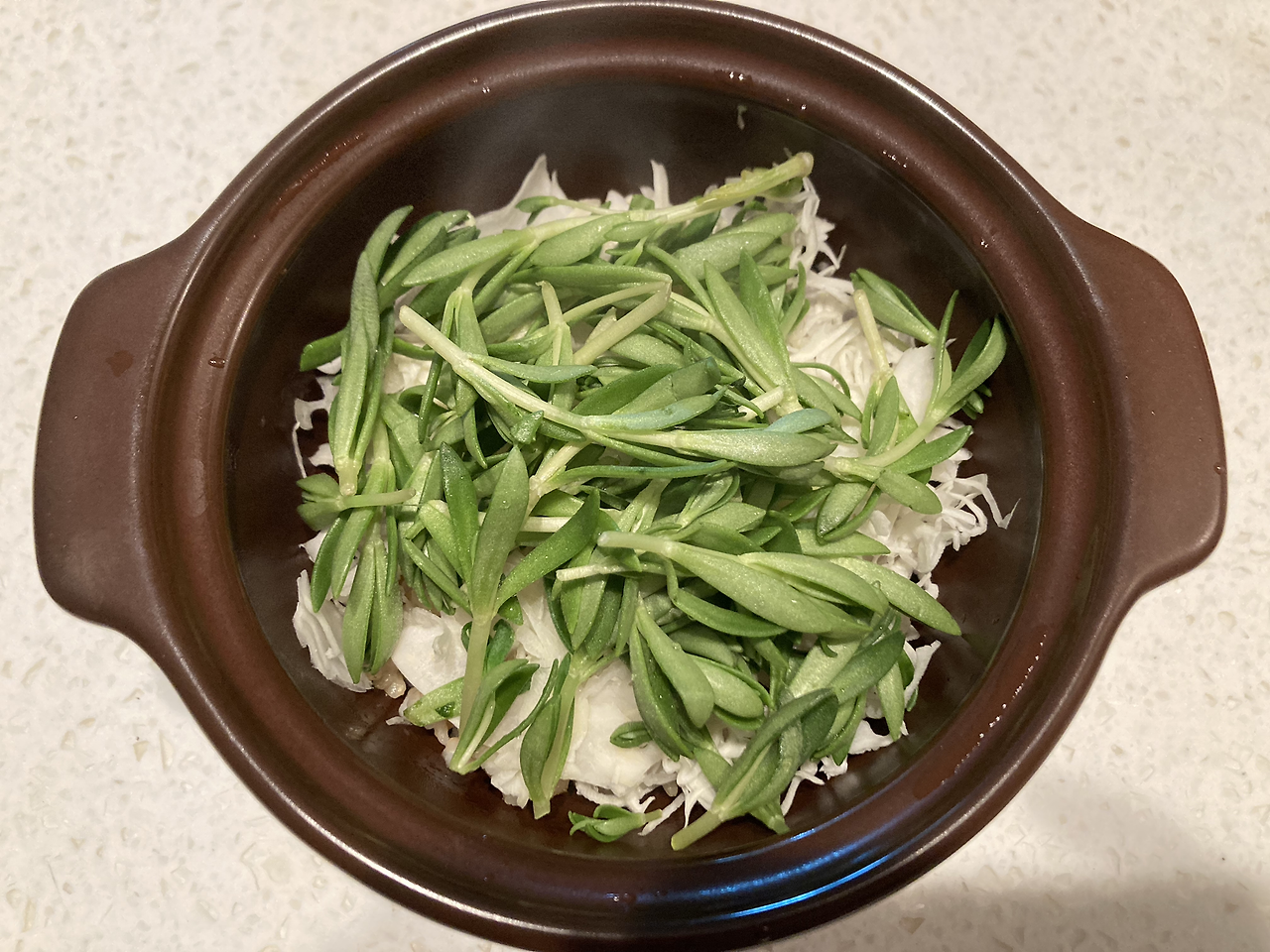 핵심은 뿌리채소 영양밥이다, 이미 무다린 물로 간이 되어 있고 채소가 들어있으니. 양배추는 신의 선물이라 불릴 정도로 영양 성분이 좋다고 하니 나의 게으름을 사하며 마음의 위안을 준다.