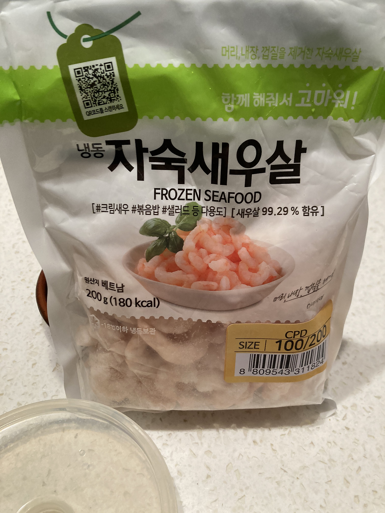 냉동 자숙 새우살. 200g에 5990원. 비마트.
