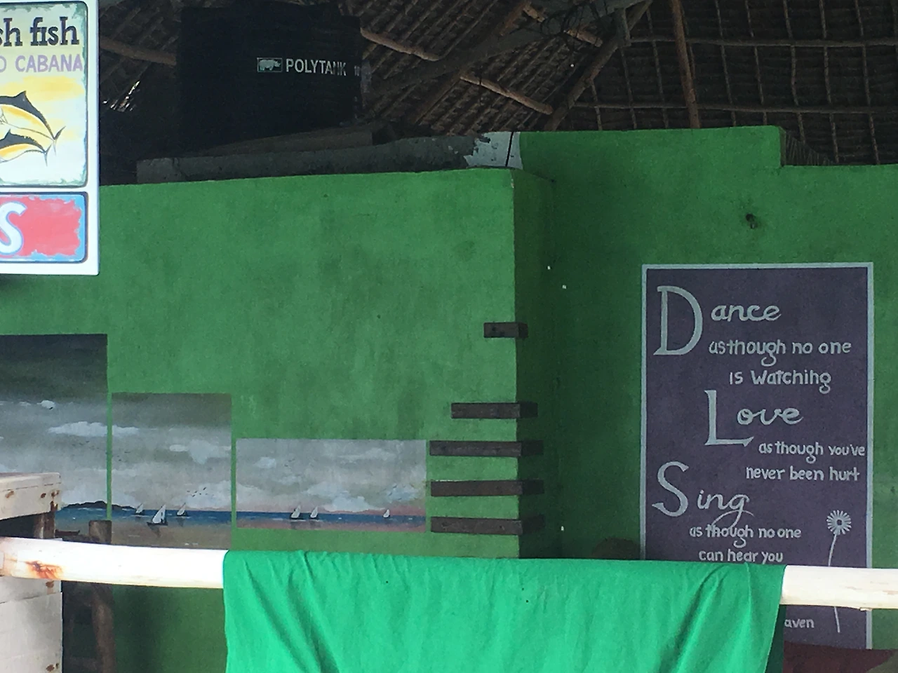 잔지바르는 희한하고 멋진 곳이었어. 능귀라는 지역은 휴양지라고 알고 갔어. 공항에서 1시간 반 가량 택시를 타고 가는데 가는 길이 험난했어. 포장도로는 군데군데 패어있었고 비포장도로는 물웅덩이로 가득했어. 주변에 보이는 집은 전쟁 속 폐허같이 금방이라도 쓰러질 것 같았어. 해변에 다와서 보니 해변가에만 조금 고급 리조트가 있었고 그 뒤로는 다 허름한 토담집 마을이었어. 마을의 어린 아이들과 주민들은 우리를 보고 밝게 인사하며 온몸으로 환영했어. 바다 쪽으로 가봤어. 비가 왔지만 바닷물은 에메랄드 색을 잃지 않고 있었어. 해변에선 조금 더 큰 아이들이 공놀이를 하고 덤블링을 하면서 놀고 있었어. 그들은 우리에게 큰 목소리로 인사하더니 자기들의 온갖 묘기를 공연하듯 보여줬어. 이슬람 사원에서 기도시간 종소리가 들려왔어. 여기 사람들은 90%가 이슬람교를 믿는대. 숙소에 설치된 흔들 그네에 앉아 기도 소리를 들으며 비 오는 모습을 봤어. 차분히 가라앉은 그 순간이 행복했어. 이 곳 사람들은 행복할까 생각했어.