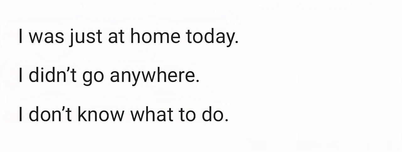 “I was just at home today.” 정도의 무미건조한 문장 밖에 떠오르지 않는다.