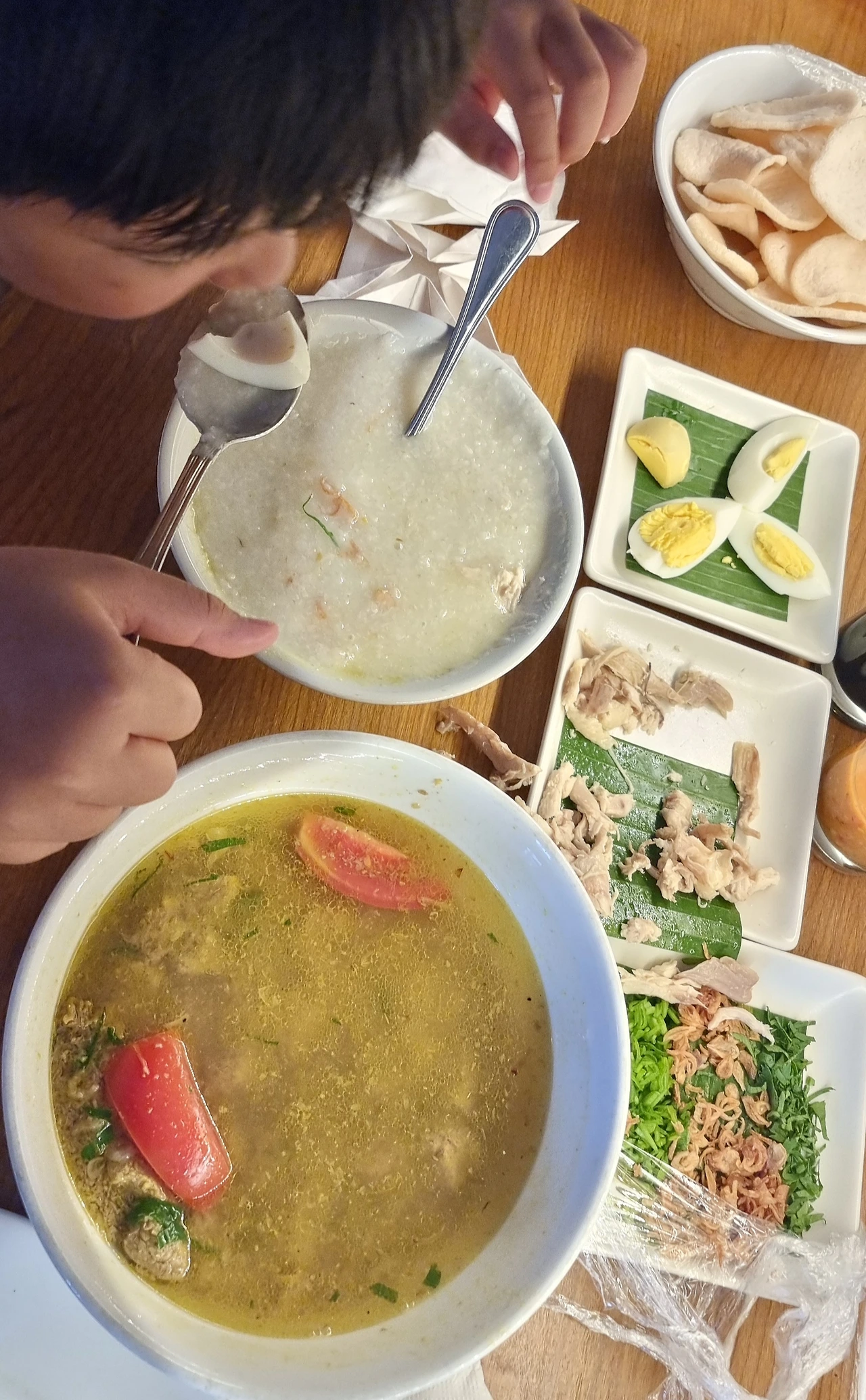 호텔 특별 죽 서비스 한국행 비행기를 타는 날, 국적기 비행 출발 시간이 밤 11시가 넘다 보니 그냥 하루를 빈둥거릴 수 없어서 아침 일찍 우붓 발리 사파리를 가기로 결정했다. 오전 7시 30분에 호텔 로비에서 택시 기사를 만나기로 하고 6시간 여행 일정을 잡았는데 아들을 아침 일찍 깨워 조식까지 먹일 자신이 없었다. 바로 전날, 웨이트리스가 언제 한국에 들어가는지, 들어가기 전 뭘 할 건지 물어본다. 솔직하게 얘기했더니, "그럼 아침 조식 도시락을 준비해 줄까요?" 한다. 그런 서비스가 있냐고 물었더니 특별히 싸주겠다고 한다. 마음씀이 너무 고마웠다.