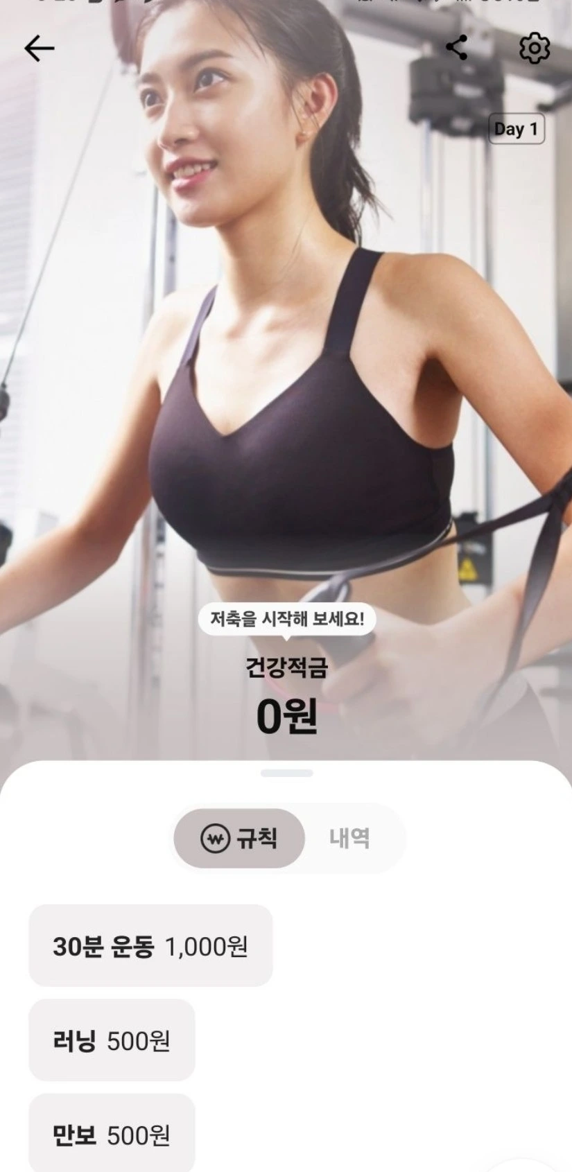 <카카오뱅크 건강 적금 통장 개설> 여기에 6개월 장기 프로젝트로 예치금을 미리 걷기로 했다. 한 달에 1만 원씩 총 6만 원을 모임 통장에 선금으로 넣고, 한 달 단위로 목표달성 시 1만 원씩 각자의 건강 적금 통장에 입금되는 방식을 도입한다. 목표 미달성 시에는 미달성 날짜를 일할로 계산하여 1만 원에서 차감된 금액이 통장으로 들어간다. 미달성 목표로 인해 모임 통장에 남게 되는 금액은 기부하기로 합의했다. 운동도 하고, 목표 달성 시 돈도 받고, 미달성 시 기부도 하는, 누이 좋고 매부 좋은 쫀쫀한 운동 프로젝트가 설계되었다.