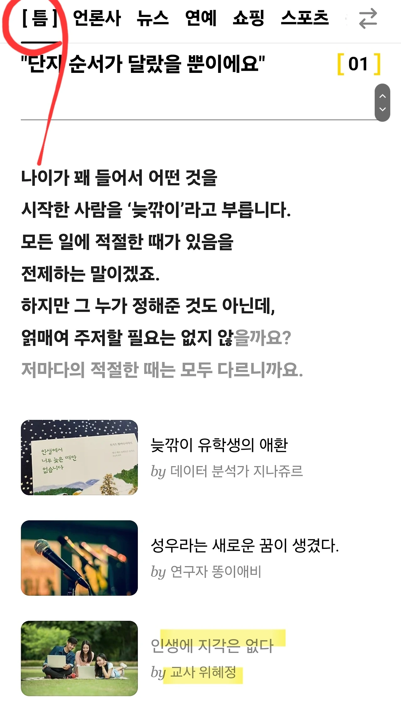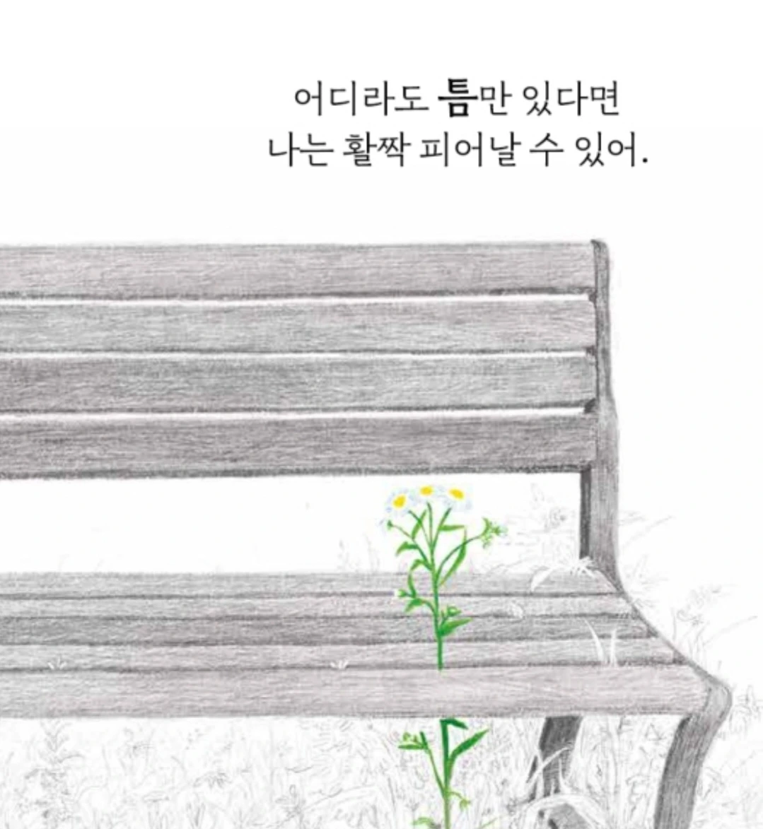 지금은 딱 이 정도가 나다. 갑작스러운 글 조회수 상승이 마냥 기쁨으로 이어지지 않은 이유였다. 물론, 앞으로 어떻게 바뀔지는 모르지만. 일상과 다른 현상에 의심부터 품은 난, 무대의 중앙에 서기보다 구석진 곳 어느 틈에서 피어오르는 꽃이길 바란다. 아무도 모르게 피어났지만 분명히 강한 향을 내는 꽃. [틈만 나면]이라는 동화 속 메시지처럼, 내 삶의 어느 틈이 자양분이 되어 활짝 만개하면 좋겠다. 작은 꽃도 꽃이라는 때문이다.