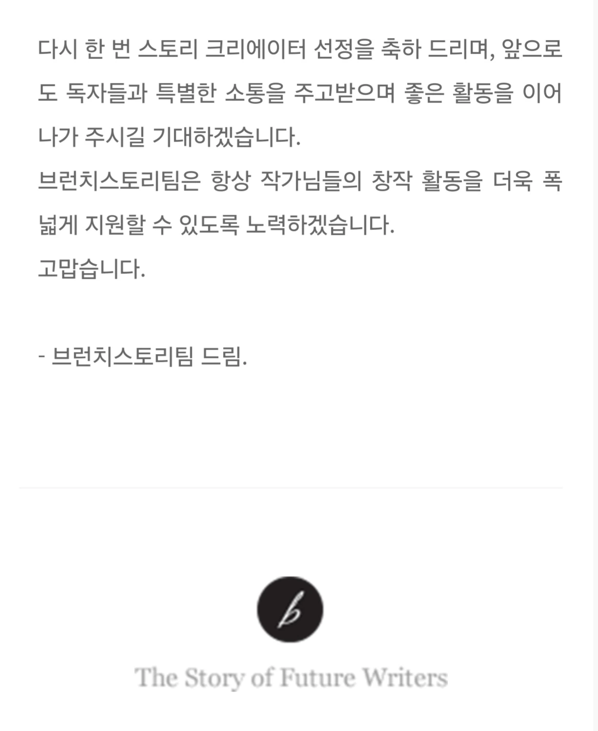 하루 뒤에 브런치에서 메일을 받았어요. 조용히 배지를 부여한 후 다음날 설명 메일을 주시더라구요. 스토레 크리에이터가 맞네요^^