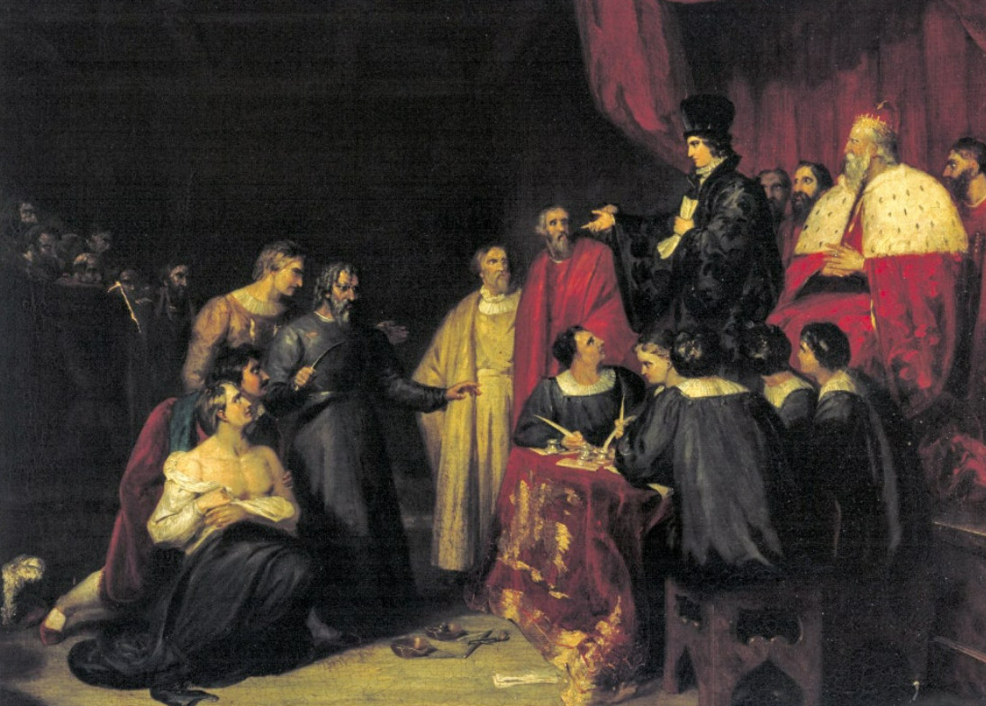 주인공 안토니오는 친구 바사니오를 위해 '기한 내에 돈을 갚지 못하면 심장에서 가까운 1파운드의 살을 베어주기로 한다'는 사악한 계약 조건에 사인을 하고 돈을 빌립니다. 안타깝게도 상황은 비극으로 치닫지요. 상인 안토니오의 배가 선적물을 싣고 오다가 난파되었고 그는 모든 재산을 잃고 파산하게 됩니다. 돈을 갚을 수 없어 감옥에 갇히게 된 안토니오는 결국 재판정에 서게 되고 목숨을 잃을 위기에 처합니다. 이때, 재판관으로 변장한 바사니오의 아내 포샤가 번뜩이는 기지로 극에 반전을 더합니다. 솔로몬의 지혜와 같은 그녀의 명판결은 다음과 같았습니다.