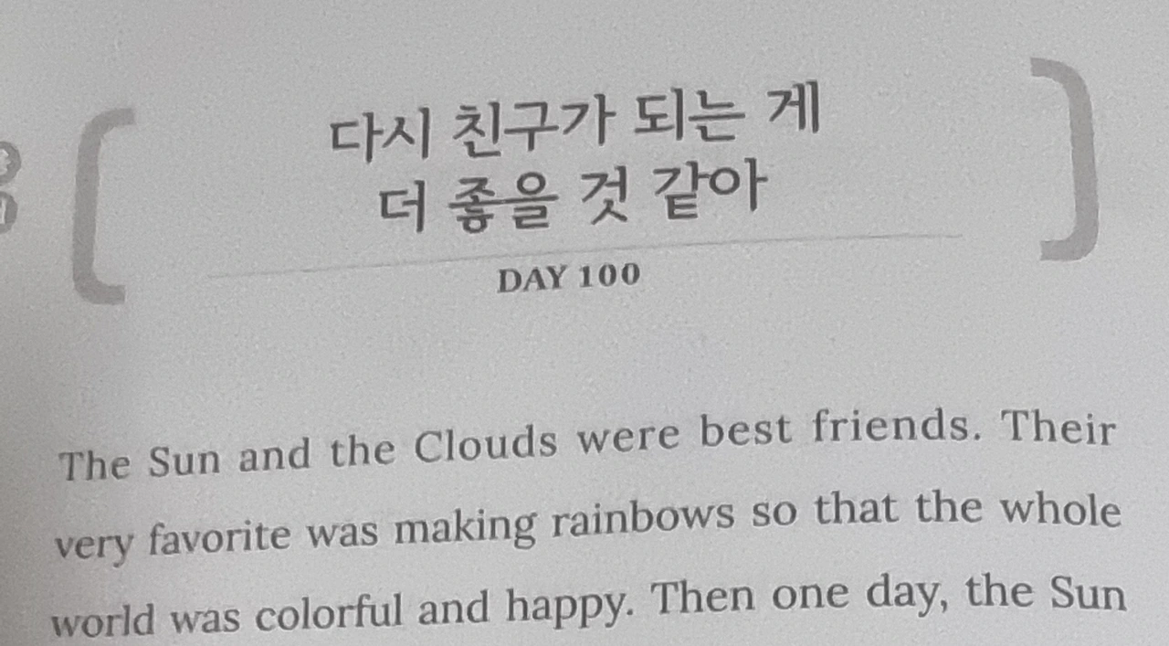 처음 시작할 때는 필사 텍스트 전문을 쓰도록 했는데 시간이 지나면서 양을 덜어냈다. 쓰는 부담을 줄이고 영어 그림책을 읽는 연습에 더 초점을 맞추기 위해서였다. 아이의 생각을 영어로 표현하는 것을 자극하기 위해 녹음을 할 때, 가장 마음에 드는 문장을 고르고 이유도 말하도록 했다. 아이는 텍스트를 읽는 동안 한 문장을 즉석에서 선택한 후, 더듬더듬 자신의 생각을 표현했다. 매번 대답을 듣고 빵 터지곤 했다. 어른으로서 가지고 있던 틀이 깨지고 아이의 세계에서 노니는 모습을 이해할 수 있었다. 그저 귀엽고 예뻤다. 오늘은 어떤 문장을 골라 엄마에게 웃음을 안겨줄까 내심 기대와 궁금증을 가지며 즐겼다. 100일간 아이와 필사를 하며 누린 유익은 다음과 같다.
