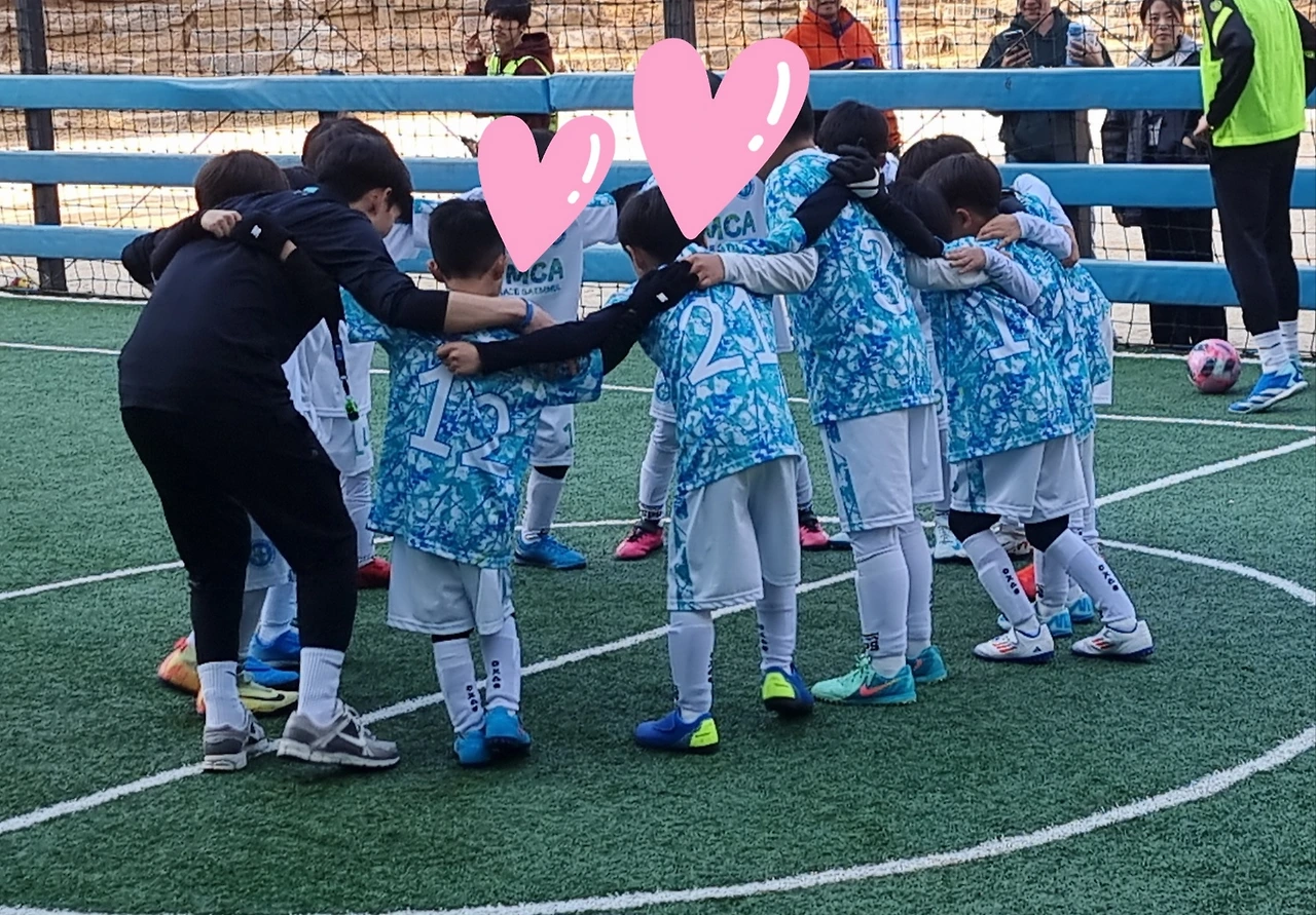 그래서일까? 예상외로 쪼꼬미들의 풋살 경기 관전 경험은 밀도와 농도가 진하다. 하루 종일 5~6 경기를 뛰는 녀석들을 응원해야 하는 부모들의 체력 고갈을 뛰어넘을 만큼 경기 틈틈이 들리고 보이는 장면들이 찐 감동이다. 풋살이 이렇게 재미있을 줄이야! 처음 알았다. 선생님은 여기저기 분주하게 대회를 챙기는 와중에도 아이들의 경기가 끝날 때면 혜성처럼 등장해서 동그랗게 어깨동무 원을 그린 후 격려의 구호를 외쳐 마무리하신다. 승패와 상관없는 장면에 뭉클하다.