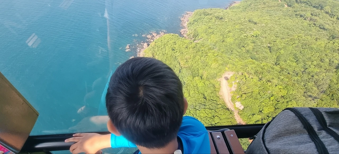 푸꾸옥에서 혼똔섬까지는 세계에서 가장 긴 해상 케이블카를 타고 건넌다. 케이블카 탑승지는 선셋 타운이다. 썬월드 케이블카 역에서 30인승이라는 어마어마한 규모의 대형 케이블카에 올라타면, 세계 기록 보유(기네스북 등재) 인증 마크가 붙어 있다. 해상 케이블카의 길이가 장장 7,899.9m나 된다니, 사진을 덥석 찍었다. 도착지까지 끝없이 펼쳐진 푸꾸옥의 바다 위에 한참을 둥실 떠있다가 언제 내리나... 하다 보면 워터파크에 도착한다. 그만큼 길다. 최종 목적지 혼똔섬 워터파크(아쿠아토피아)는 케이블카에서 내리면 바로 입장할 수 있다.