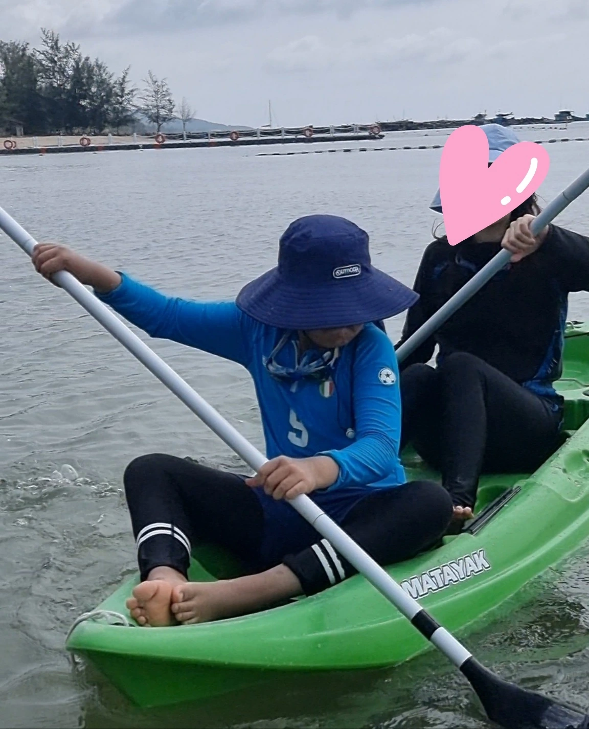 프라이빗 비치에 구비되어 있는 보트도 처음 타볼 수 있었다. 물이 잔잔하고, 사람들이 많지 않은 데다 안전 구획 덕분에 떠내려갈 위험/근심 없이 마음껏 노를 저었다. 아들은 신이 났다. 노를 저어가며 기우뚱하지만 제법 균형을 잡는다. 나중에는 지친 아들 덕에 나 혼자 이리저리 노젓기에 여념이 없었지만. 엄마를 제대로운동시켜 주는 녀석, 고맙다.