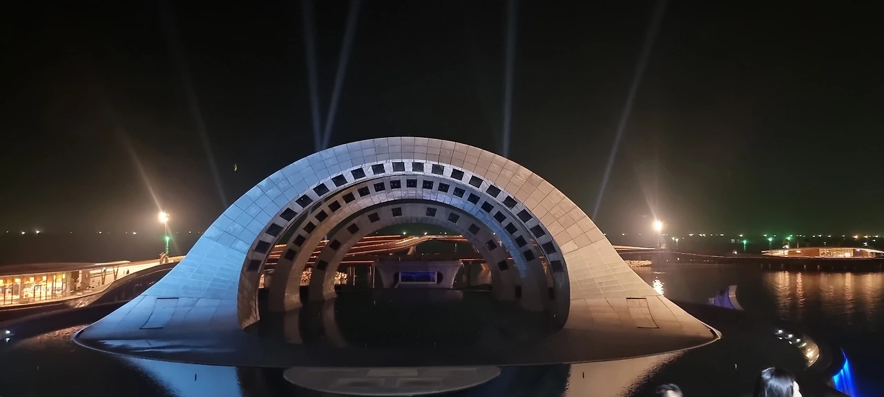 바로 다음 시간대의 <Kiss of the sea> 공연은 볼거리로 가득 찬 대규모 퍼포먼스다. 공연 30분 전부터 입장 대기줄을 보며, 매일 진행하는 공연인데도 몰려든 인파로 입이 떡 벌어진다. 아치 모형의 골격을 갖춘 스크린이 무대 앞에 고요히 좌정해 있다가 공연 시작을 알리기 위해 갑자기 물이 쏴~하고 떨어지더니 초대형 해수 프로젝션 스크린으로 변신을 하는 것 자체가 새로운 경험이었다.