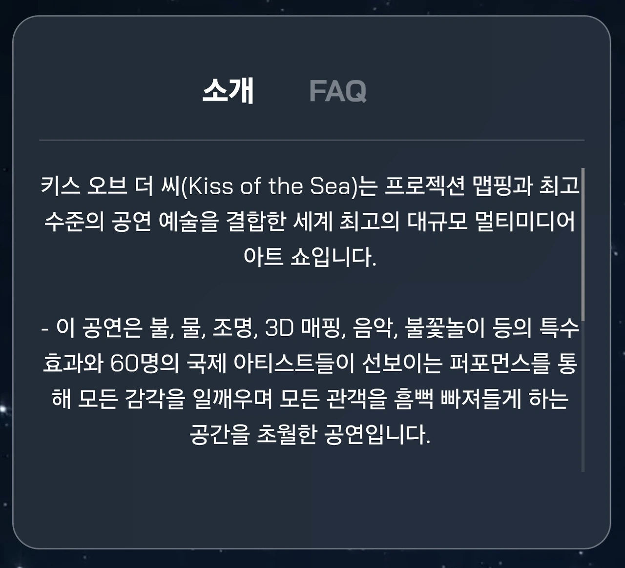 대표적인 공연 《KISS OF THE SEA》