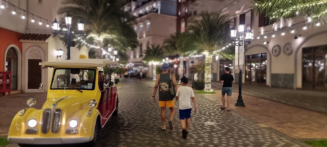 선셋 타운은 이름처럼 아름다운 일몰을 감상할 수 있는 지역으로 썬그룹의 특별 프로젝트로 설계된 단지이다. 푸꾸옥 섬의 남서 해변에 위치한 곳으로 아름다운 건축물, 쇼핑 단지, 레스토랑, 엔터테인먼트 등 관광객들을 끌어당기는 요소들의 집약소라 볼 수 있다. 워낙 유명한 데다 호텔에서부터 왕복 무료 셔틀이 있어서 여러 번 방문할 수 있었다. 푸꾸옥 섬 내에서 선셋 타운까지 호텔을 도는 무료 순환 버스 배차는 관광객들의 접근성을 높이는 이곳만의 전략적 특징이라 할 수 있다. 2층 버스의 오픈 데크에 자리를 잡고 앉으면 선셋타운까지 가는 길에 즐비해 있는 유럽풍의 다채로운 건축물들 까지 감상할 수 있다.