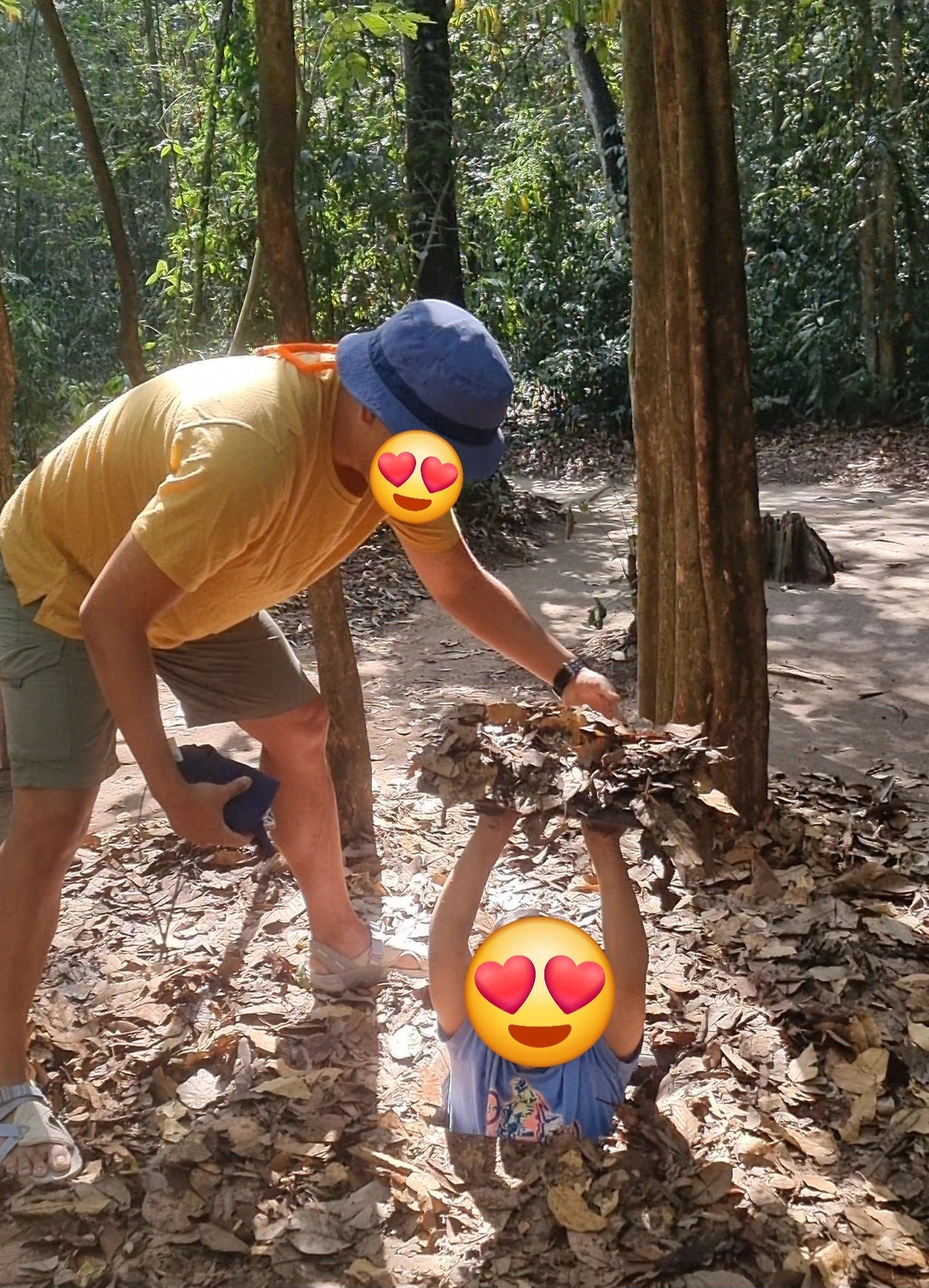 구찌터널은 한 번쯤은 경험해 보기 좋다. 남편은 학을 땠다. 덩치 큰 사람들의 애로사항이려니 한다. 관광 체험을 위해 1.3배 키워 놓은 곳이 그 정도면 원래 땅굴의 크기로는 외국인들이 절대 들어갈 수 없지 않았을까 싶다. 터널 체험을 하려면 긴 바지를 입고 운동화를 착용하는 것을 추천한다. 반바지에 샌들 차림을 한 남편의 당부다.