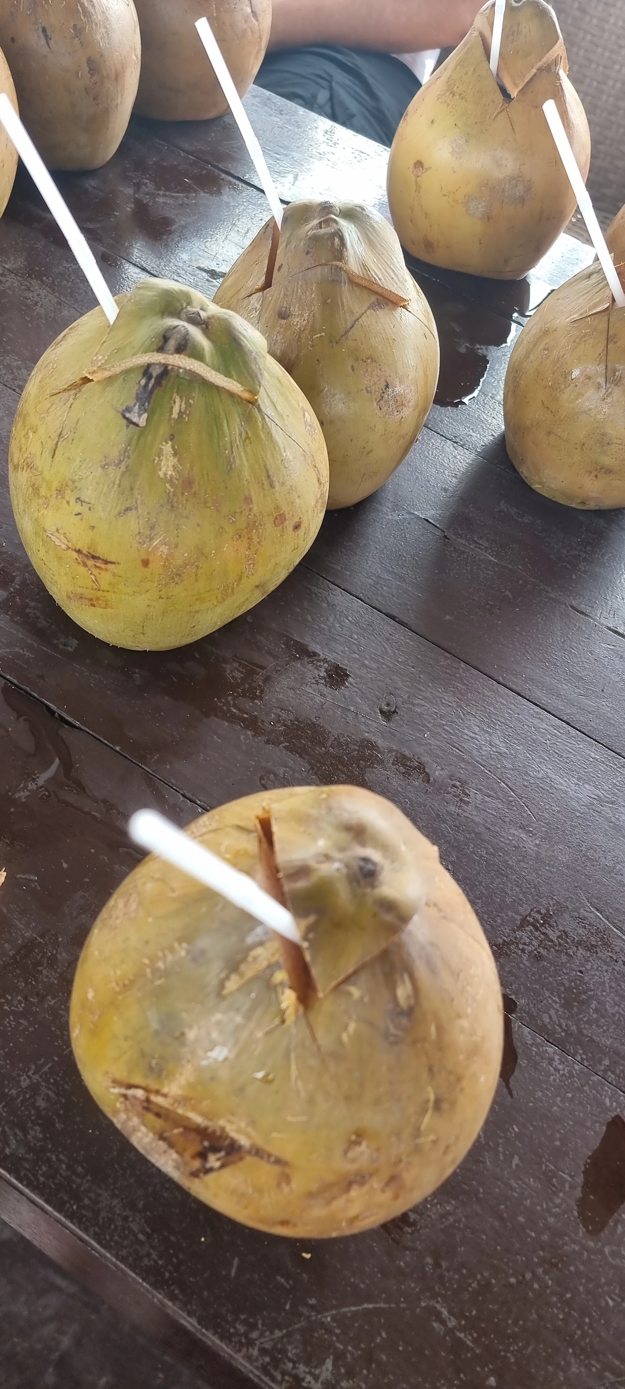 코코넛 열매를 깨고, 껍질 섬유를 분리해 내는 작업을 직접 볼 수 있었다. 우선, 단단한 겉껍질을 쪼개어 내면 그 사이로 코코넛 워터가 터져 나온다. 과즙을 따로 받고 난 후, 껍질에 철썩 붙어있는 새하얀 과육은 바로 긁어내어 먹거나 코코넛 오일 혹은 코코넛 캔디류의 재료로 사용한다. 당류를 추가하지 않아도 자연산 단 맛으로 충분할 만큼 당도가 높다. 코코넛 캐러멜, 캔디 등으로 재탄생된 샘플을 현장에서 직접 맛보고 구매하지 않을 수 없었다. 자연의 단맛이 일품이다. 겉껍질과 과육 사이를 둘러싸고 있는 거칠고 질긴 섬유는 실로 만들어 친환경 침구류, 가방과 잡화 등으로 재탄생됨을 새로 알았다. 그저 풍부한 미네랄워터의 원천이라 생각했던 코코넛은 알고 보니 뭐 하나 버릴 것 없는 동남아의 보물이다.
