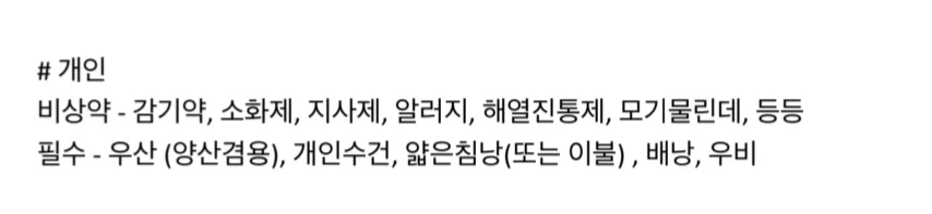 비행기를 타기 한 주 전, 재정비의 시간을 갖는다. 우선, 챙겨갈 물품부터 리스트업 하기 시작했다.