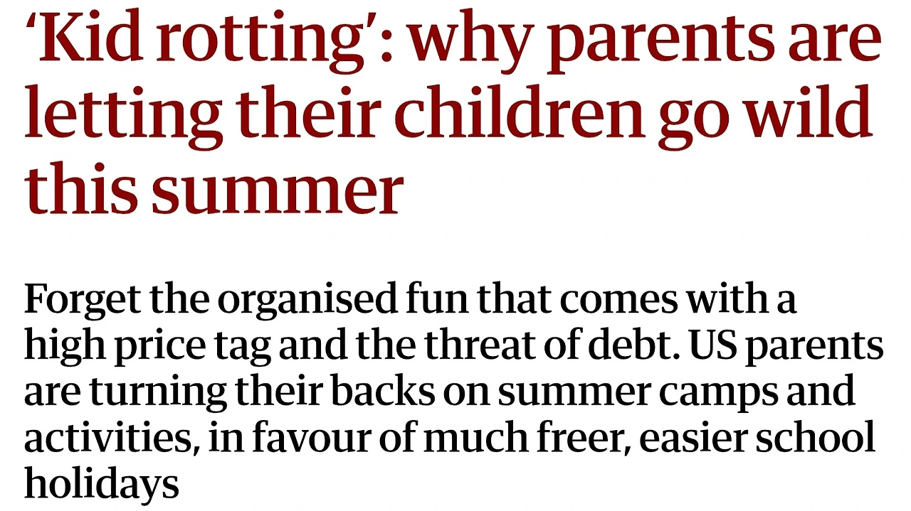 교육에 대한 고민은 한국만의 문제가 아닌 듯하다. 미국 학생들 역시 긴 여름 방학을 캠프나 각종 활동들로 꽉 채운다고 하는 걸 보면. 8주나 되는 여름 방학을 다양한 스케줄로 꾹꾹 눌러 채우려는 미국 학부모들은 방학 전부터 분주하다. 기나긴 시간을 허송 세월하지 않도록 아이들을 교육 프로그램에 묶어두는 비용을 부담하려고 전체 30프로에 해당하는 부모들이 대출까지 감수한다고 한다. 방학인데도 아이들을 어딘가로 보내야 한다는 압박감 앞에 학부모들의 경제적, 심리적 부담은 상당하다. 이에 대항하는 움직임이 일기 시작했다. 일명 Kid rotting. '아이 썩히기'라니 이건 도대체 무슨 말일까?
