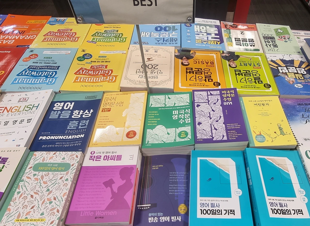 언제나 느끼지만 영어 학습 시장은 어마어마한 것 같다. 쟁쟁한 출판사들과 쟁쟁한 저자의 손을 거친 저서들 사이에서 한 뛔기의 공간을 수줍게 차지하고 있는 영어 필사책 두 권이 애틋하게 존재감을 발하고 있다. 잠식될 듯 잠식되지 않는 고집스러움으로 자리를 잘 지켜내길 응원해 본다.