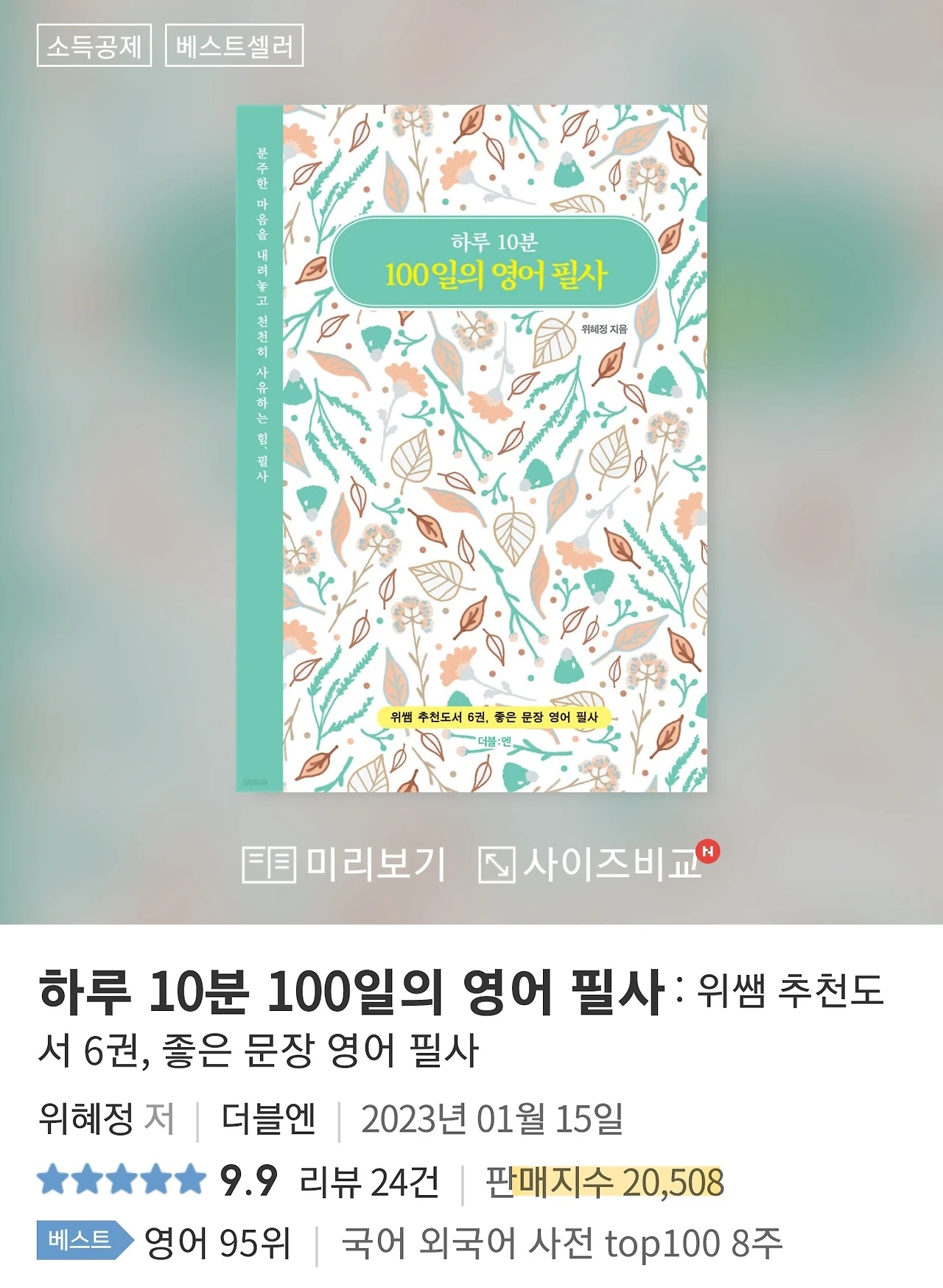첫 책을 출간하고 네이버에 베스트셀러로 책이 등록되어 있는 것에 깜짝 놀라 출판사에 문의를 드렸다.