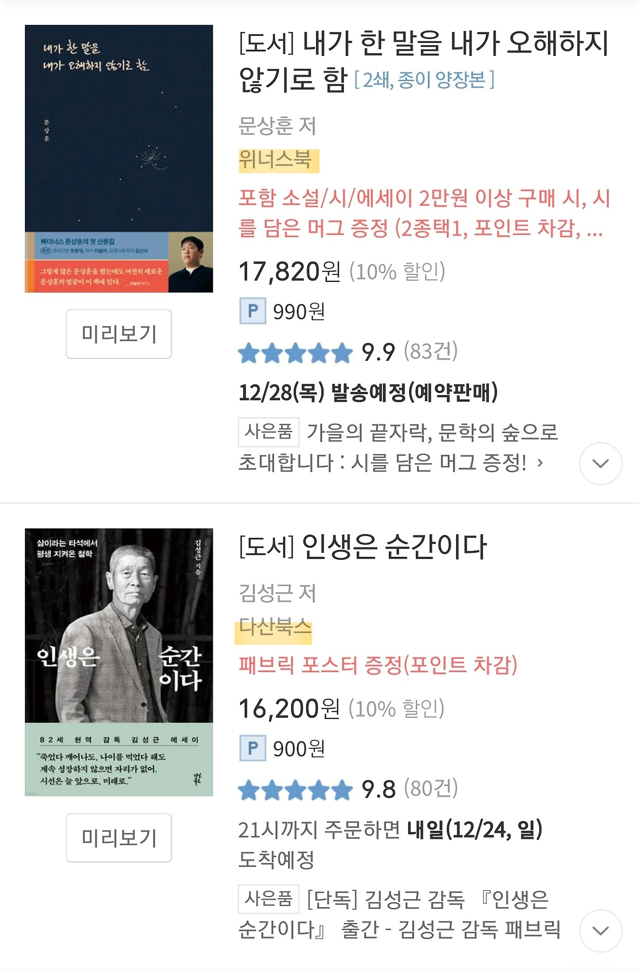 둘째, 온라인 서점(Yes24, 인터넷 교보, 알라딘 등)에서 더욱 유용한 정보를 얻을 수 있다. 개인적으로 주로 Yes 24를 애용한다. Yes 24는 인터넷 서점의 시장 점유율 50% 이상을 차지하는 만큼 직관적인 화면 구성과 편리한 인터페이스를갖추고 있다.