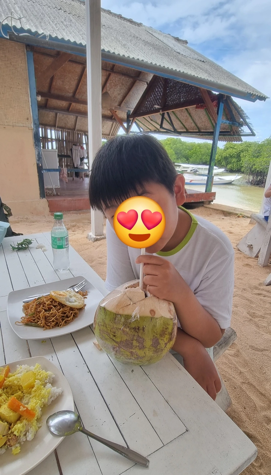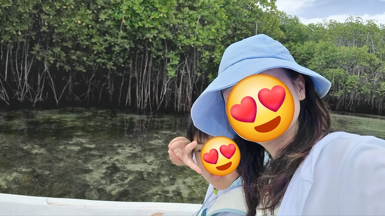 그래도 다행인건 이렇게 아름다운 에메랄드 빛 바다가 남아있다. 가슴을 쓸어 내리며 눈에 담고 가슴에 담았다. 스노클링 후 맹그로브 숲 투어와 루사 렘봉안 섬의 여러 지역을 돌아보는 투어가 계속되었다. 타이밍 절묘하게 우리처럼 여행 온 엄마와 아들을 만났다. 아들 둘이 동갑내기 외동이다. 말이 고팠던 두 수다쟁이들은 절친이 되어 신나게 함께 다닌다.