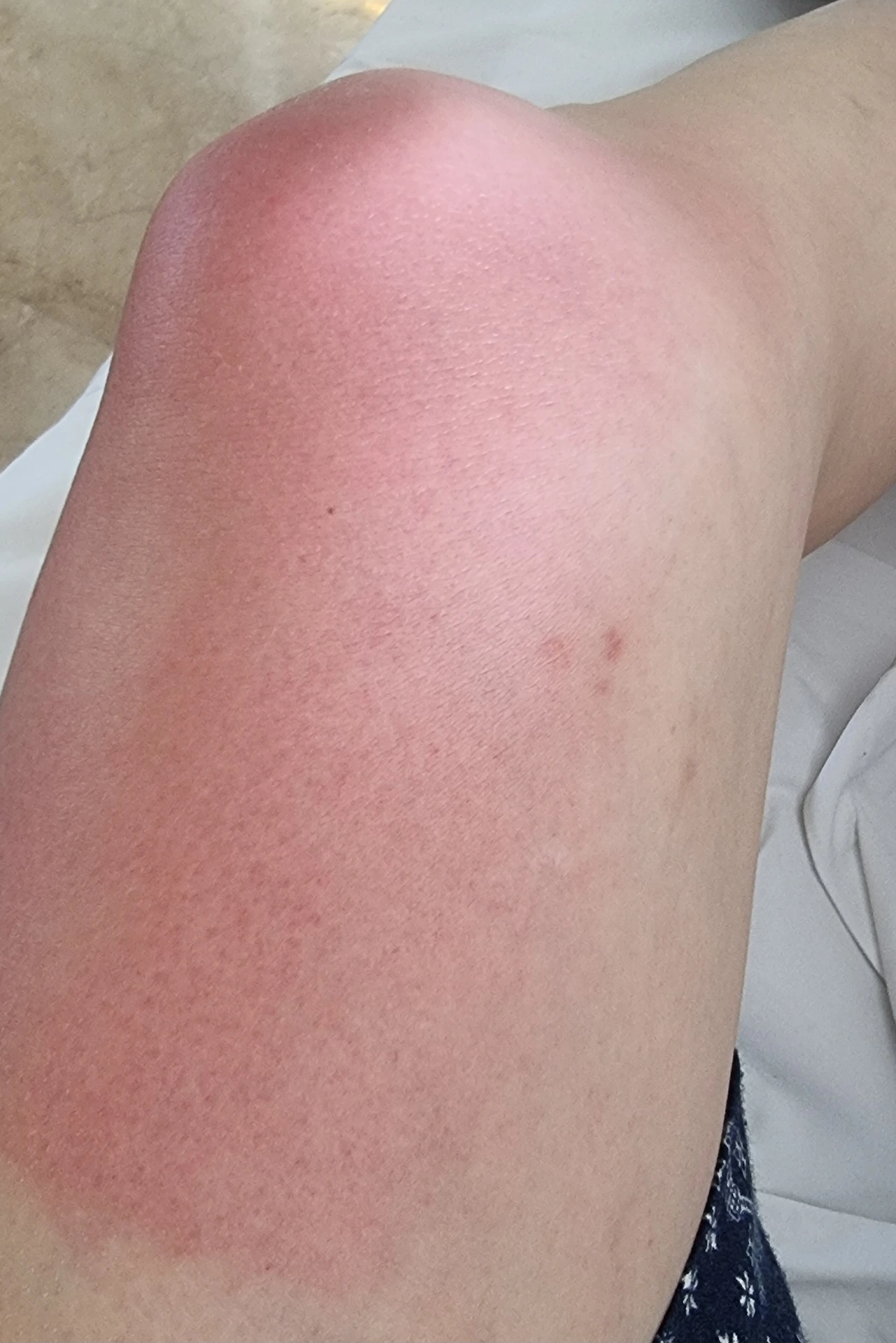 그런데 반전은 벌건 아들의 얼굴 보다 내 다리가 더 심각하게 익어있는 사실을 하루 뒤에나 발견했다는 것! 무뎌도 보통 무딘 게 아니다. 뭔가 다리가 따끔거려 긴 바지를 걷어 올렸더니 오 마이 갓! 물에 들어가지도, 뙤약볕 아래 있지도 않았는데 썬베드에서 졸다가 이 지경이 돼버렸다. 발리의 햇볕이 이렇게 강렬할 줄이야.