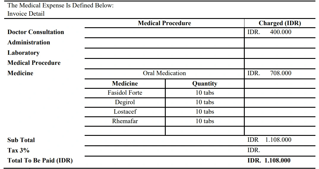 후들후들.... 1,108,000 루피아는 9만 원에 가까운 돈이다. 병원 한번 갔다 오면 10만 원 정도의 돈이 깨지다니 이곳에서는 건강 관리를 잘해야 한다. 수액 한번 맞고 나니 20만 원이 훌쩍 넘었다는 말이 그냥 하는 말이 아니다. 다행히 여행자 보험을 들고 와서 보험비의 3배 이상은 뽑아낼 듯하니 손해 본 장사는 아닌 것 같다.