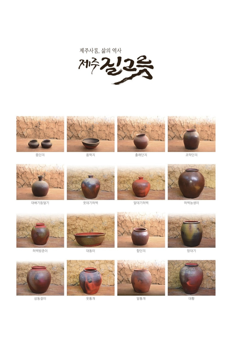 '제주질그릇'은 아름답게 장식되는 도자기가 아닌 일상의 도구였기 때문에 없어서는 안될 존재면서 관심도 시선도 받지 못했던 물과 공기, 바람 같은 자연의 일부분처럼 늘 그자리에만 있었던 제주의 소중한 문화랍니다.