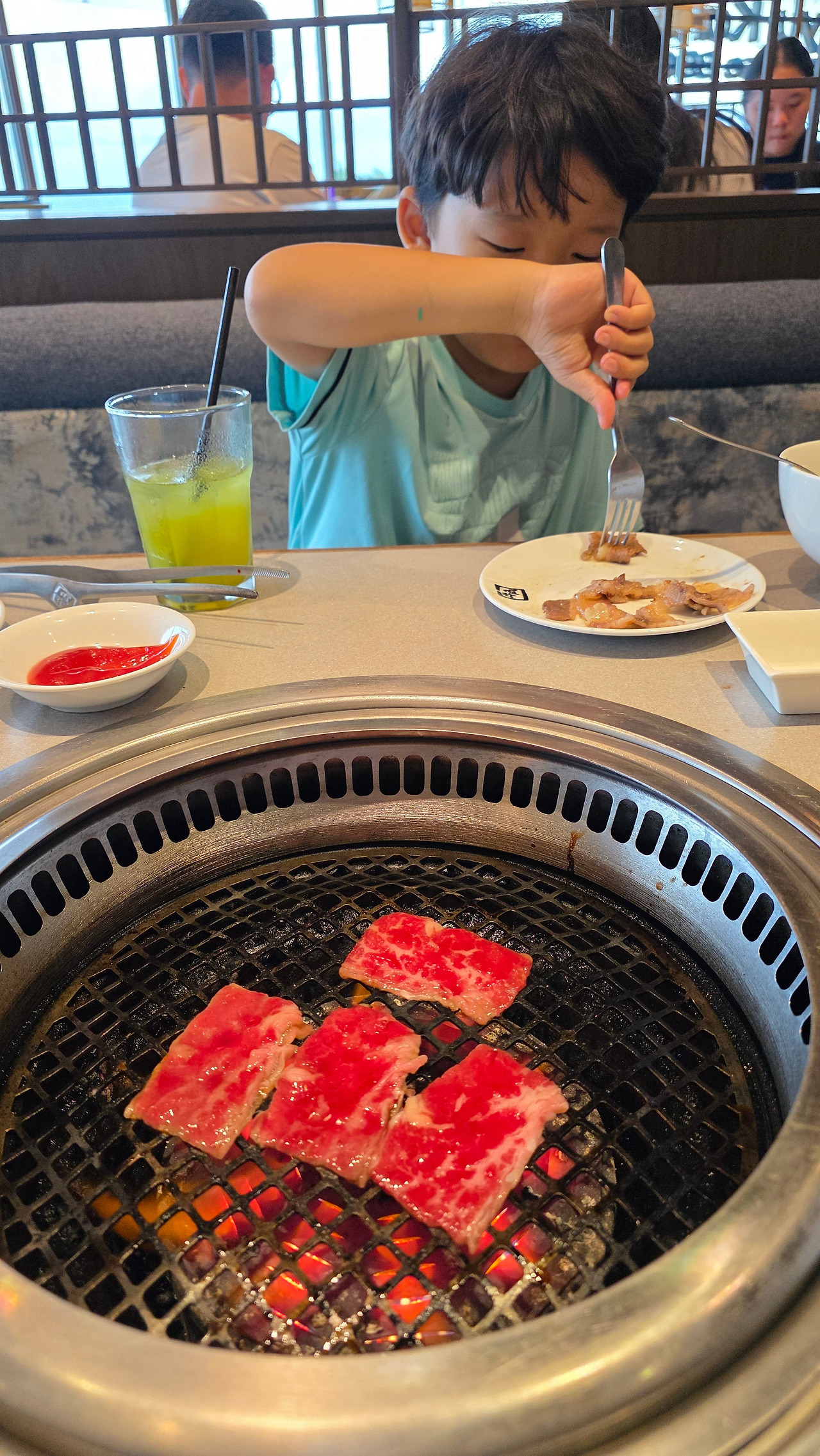 아내가 영상통화로 보면 아들 살 빠져 보인다고 걱정했다. 든든히 먹고 배를 한 번 두드릴 때가 됐다 싶었다. 비비큐 모형 만들기를 보다 보니 진짜 비비큐가 먹고 싶어지기도 했다. 저녁식사 장소를 일본식 고깃집으로 정했다. "한국에서 먹던 맛이야." 익숙한 고기맛에 숟가락과 포크가 전보다 바쁘게 움직인다. 밥과 사이드 음식도 잘 챙겨 먹었다. 발리에 온 이후 식사량이 가장 많은 저녁이다. 애가 잘 먹으면 부모도 배부르다. 인도네시아 음식도 잘 먹지만 익숙한 음식도 자주 먹여야겠다.