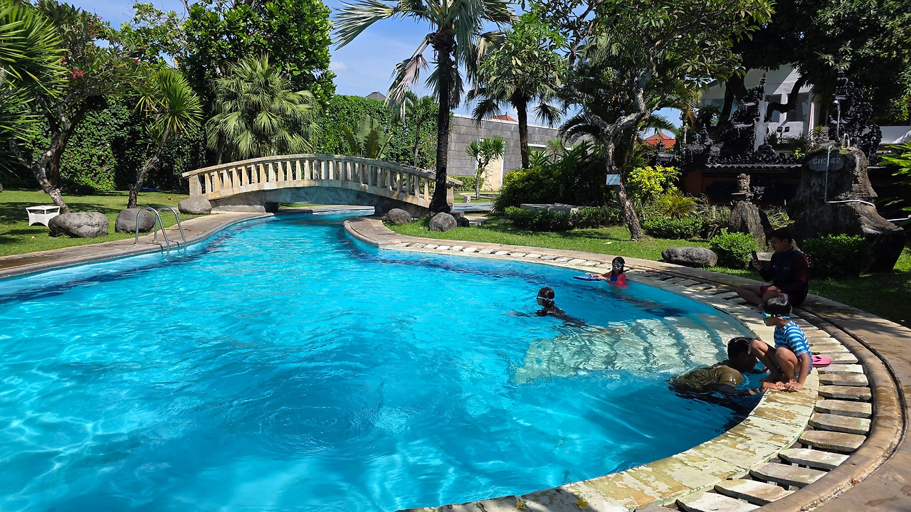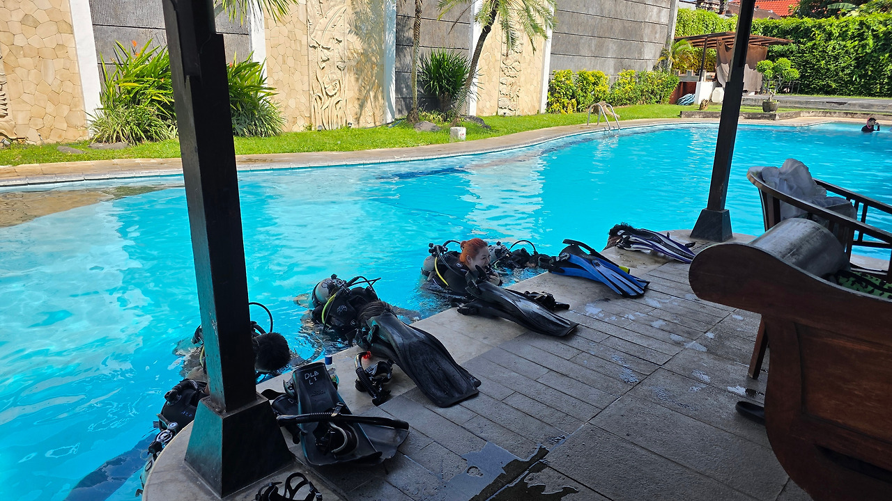 길이 100미터의 수영장을 천천히 가로질렀다. 발리에 와서 처음으로 수영다운 수영을 하는 기분이었다. 약간씩 방향을 틀어야 하고, 폭도 좁아졌다 넓어졌다 하는 수영장이다. 즐기며 네 번을 왕복하니 30분이 지났다. 깊이도 최대 4미터까지 다양하다. 스쿠버다이빙 교육생들도 눈에 들,어왔다. 깊은 풀장에서 덕다이브 연습을 하며 더 놀았다. 방으로 돌아와 샤워를 마치고 침대에 누웠다. 개운하고 포근한 느낌이 휴식으로 다가왔다.