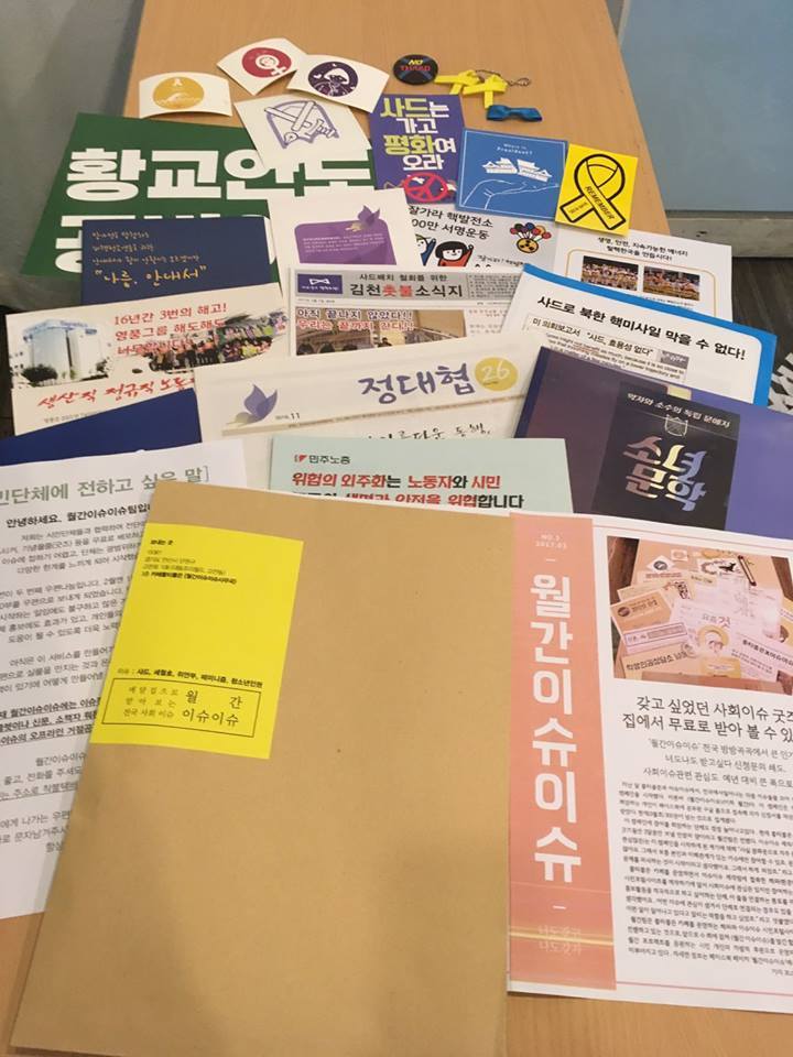 매거진 이슈이슈를 소개합니다. 아시겠지만 매거진 이슈이슈는 박근혜 탄핵 시국에서 태어났습니다. https://brunch.co.kr/@bora-dab/25 제 친구 해와는 박근혜 탄핵 국면에서 광장에 버려진 전단지를 궁금해하는 사람들이 있을 거라고 생각했어요. 저는 광장에서 나눔 되고 있는 수많은 굿즈에 물욕을 가진 사람들이 많을 거라고 생각했어요. 그래서 세상에 더 많이 알려져야 할 사회이슈가 담긴 전단지와 굿즈를 봉투에 그러모았습니다. 2017년 초판 100부로 시작해서 2018년 봄호 발행 4,000부까지 열심히 달렸으며, 이제 매거진 발행은 중단되었습니다.