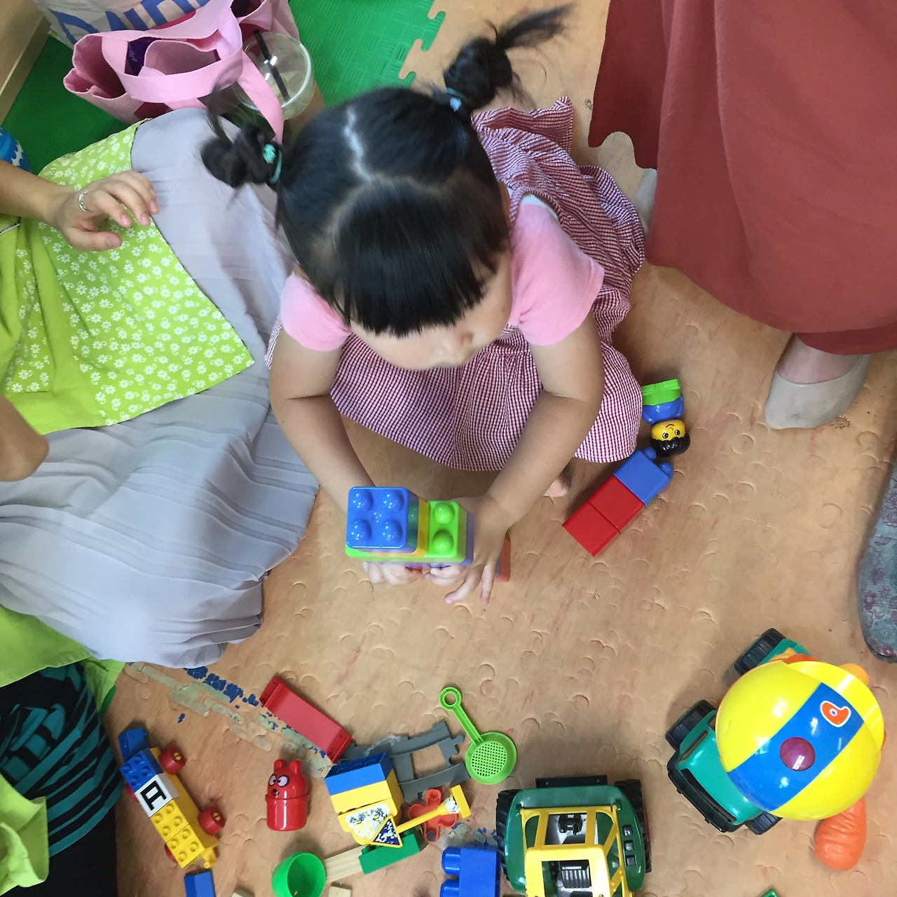 생각보다 순순히 내 손을 잡고 따라왔다. 유아부는 4-5세 아이들이 모여있어서 전쟁터나 다름없었다. 왁자지껄한 분위기 속으로 민진이 손을 잡고 들어갔다. 처음에는 아무것도 하기 싫다고 내 무릎 위에 가만히 앉아 있더니 저 멀리 있는 책과 장난감을 발견했다. 블록 쌓기를 하며 기다렸다.