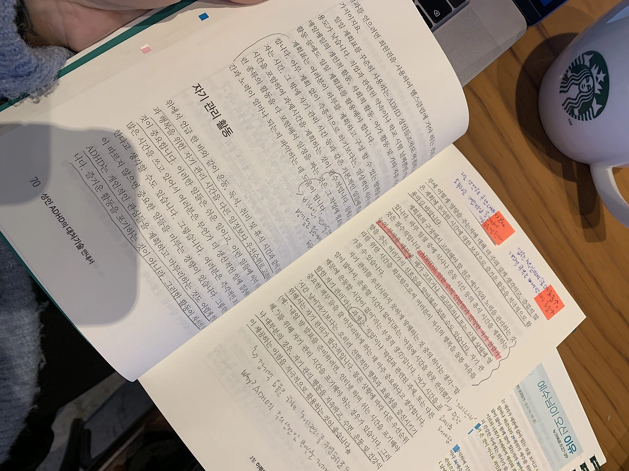 ADHD를 진단받은 지, 글쎄 수년이 흘렀다.(정확한 날수는... 찾아보기 귀찮다) 지금은 약 복용과 나름의 인지행동치료를 병행하고 있다. 이 과정에서 발견한 책 <성인 ADHD의 대처기술 안내서>를 소개하고자 한다. 표지만 보면 핵노잼 전공서같은데 그 내용은 정말 땅속에 감추어진 보화와 같다. 제발 읽어보시길. ADHD 인간을 깊이 사랑한 대문자 T 인간의 따뜻한 대처기술 안내서 같달까. ADHD를 깊이 이해하고 이 세상을 살아가기 위한 대처기술을 아주 현실적으로 제안하고 독려한다. 저자 2명은 모두 펜실베니아 대학의 성인 주의력결핍 과잉행동장애 치료 및 연구 프로그램에서 성인 ADHD의 평가 및 치료를 전문적으로 수행하고 있다. 한마디로 평생 ADHD 인간과 함께한 인간들이란 말이다. 서문에 밝힌 이들의 고백이다.