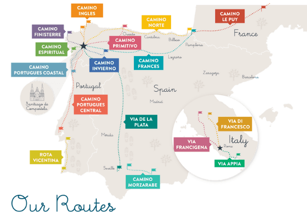 스페인 북서부에 위치한 '산티아고 데 콤포스텔라'는 예수님 열두 제자 중 한 명이자 가장 먼저 순교한 성(saint) 야고보(iago-유럽식 표기)의 유해가 묻혀 있는 곳이다. 중세에는 각자 집에서부터 출발해 산티아고 대성당까지 걸어가는 것이 정통이었다고 하나, 결국 어느 구간쯤에선 만나지면서 몇몇 유명한 코스들이 생겨난다. 전 세계에서 오는 지금은 네 개 코스가 제일 유명한데 프랑스길, 북쪽길, 포르투길, 은의길이다. 우리는 그중에서도 순례자의 약 70%가 선택한다는 프랑스길을 걷기로 했다.