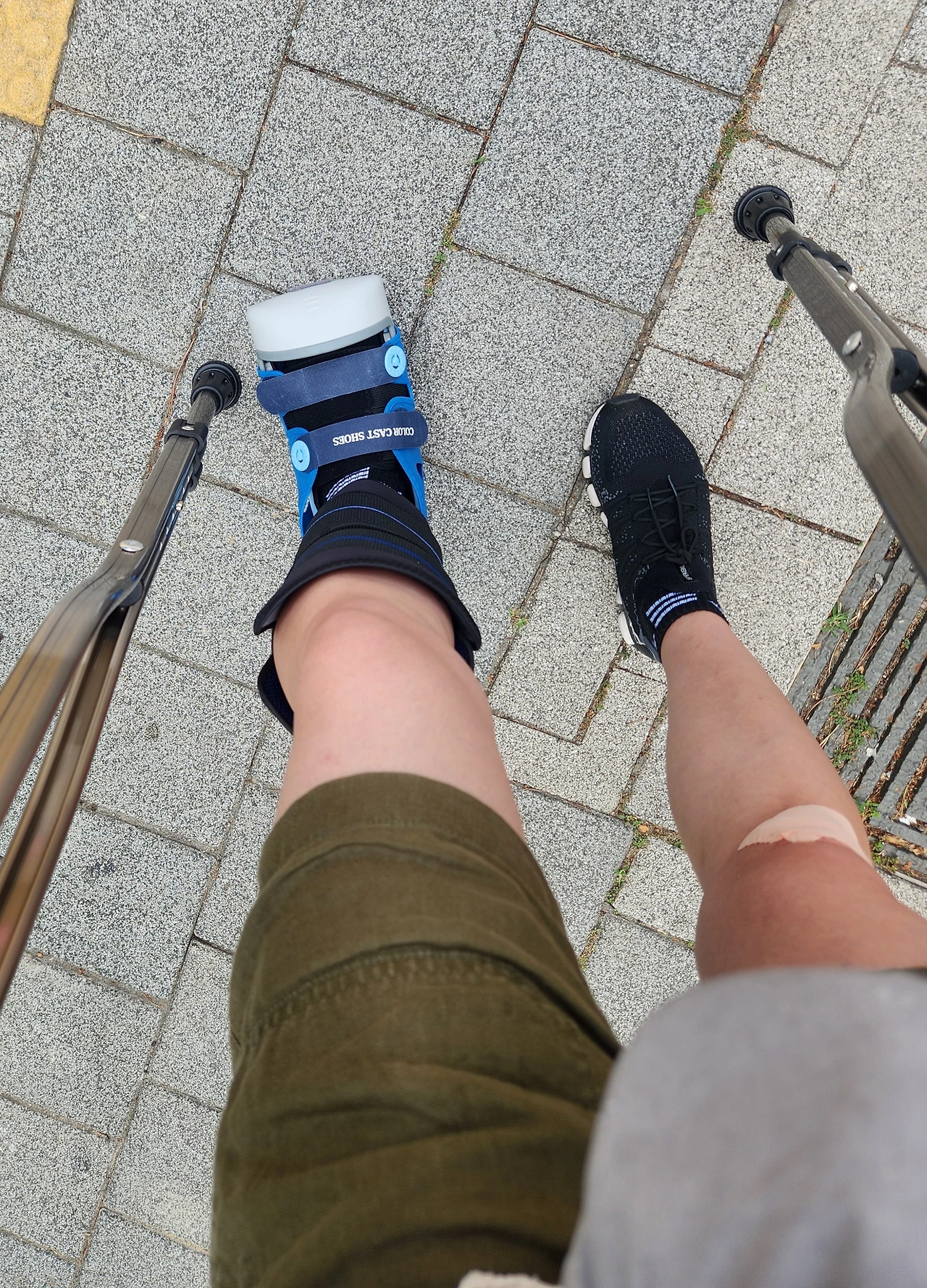 다행히 골절로 인한 통증은 별로 없고, 인대에 큰 손상이 있는 건 아니만 목발을 짚는 그 자체가 몸살과 큰 불편을 일으키고 있습니다.