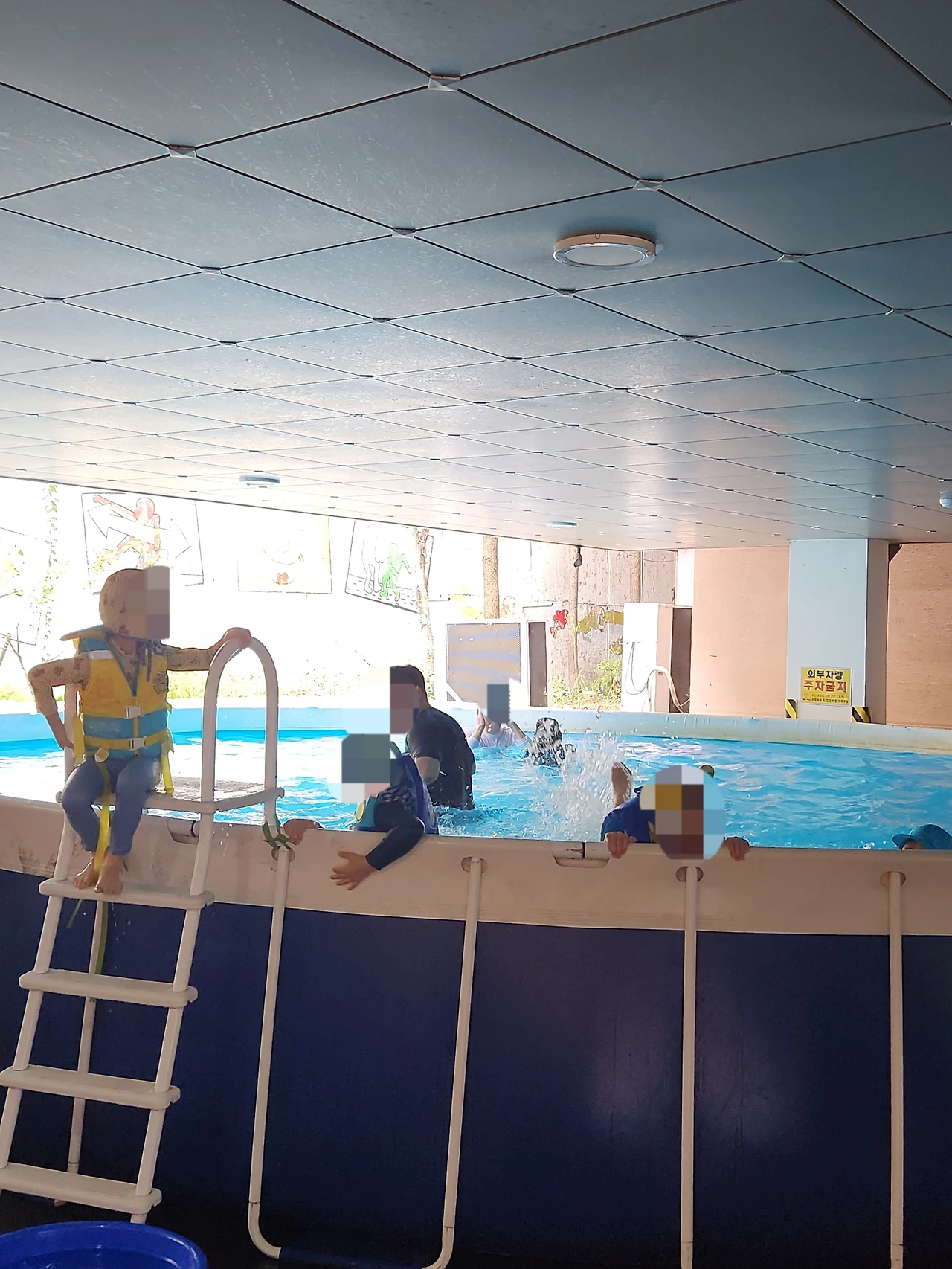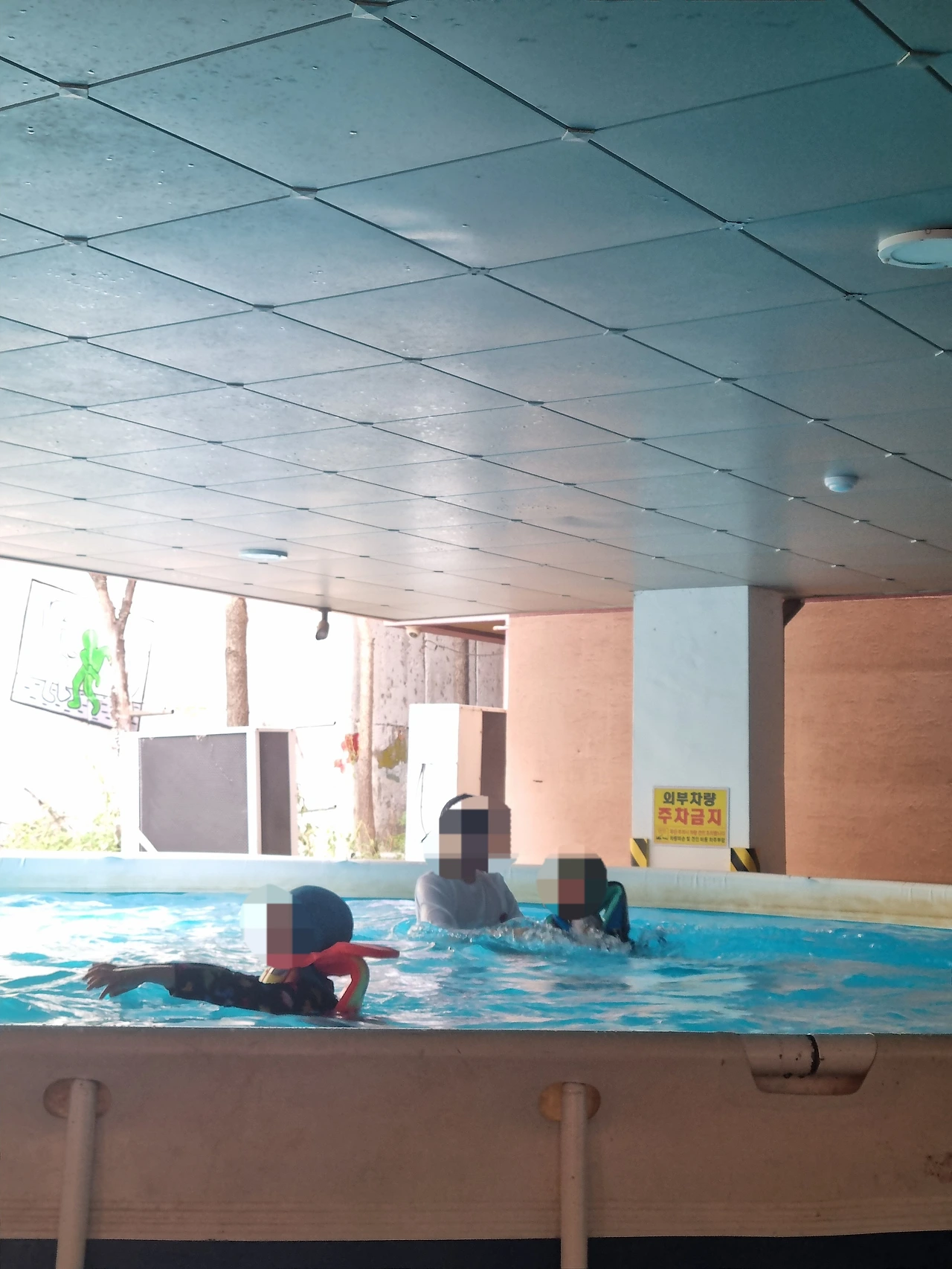 작년부터 여름에는 센터에서 주차장 풀장을 마련해 주셨습니다.