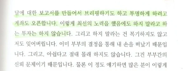 배우자의 동의를 얻기 위해서는 우선 나 자신이 투자처에 대한 확신과 충분한 이해가 있어야 해요.