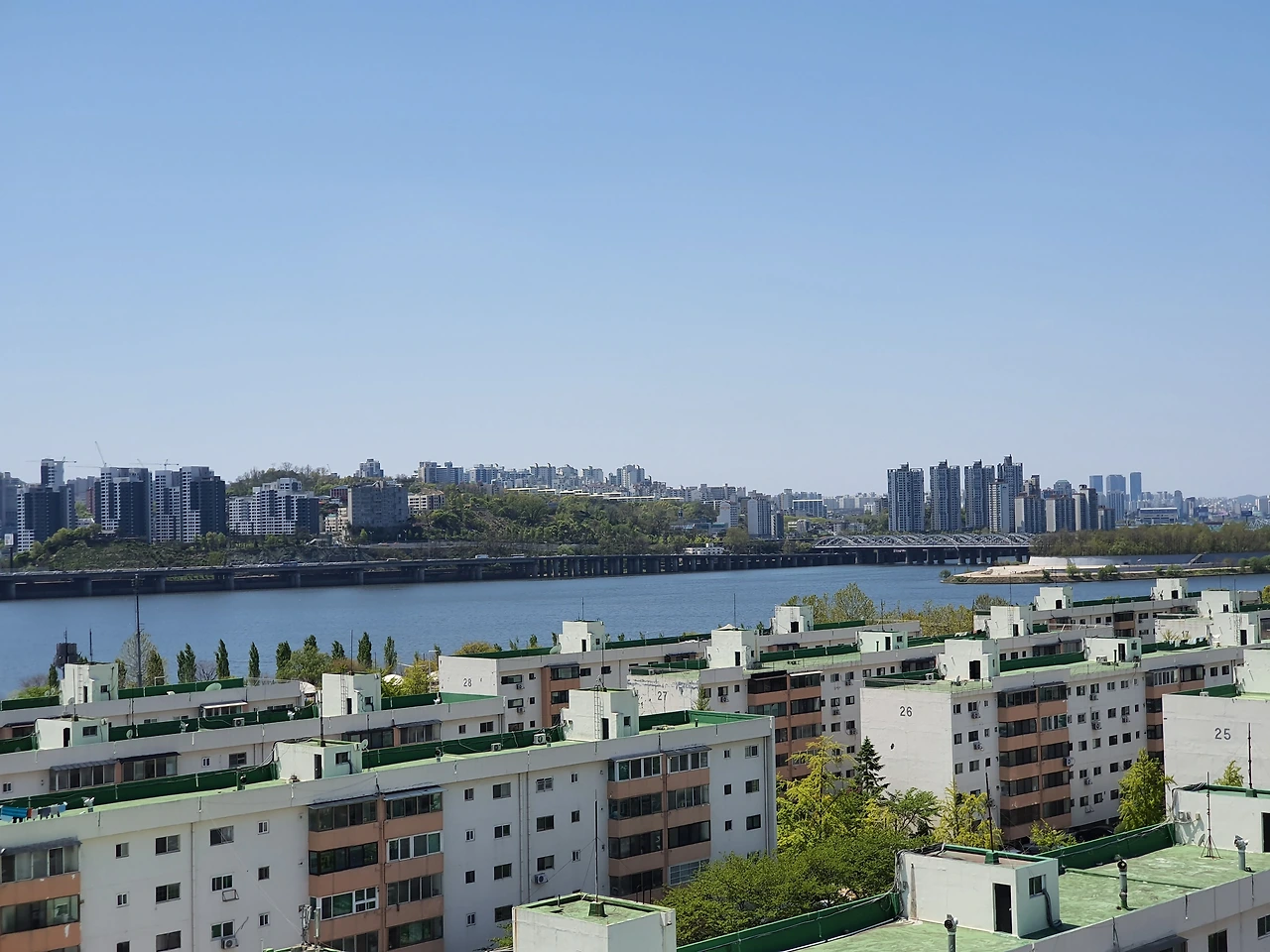 한강 쪽으로 떠 있는 해가 하루 종일 이촌동을 환히 비춘다.