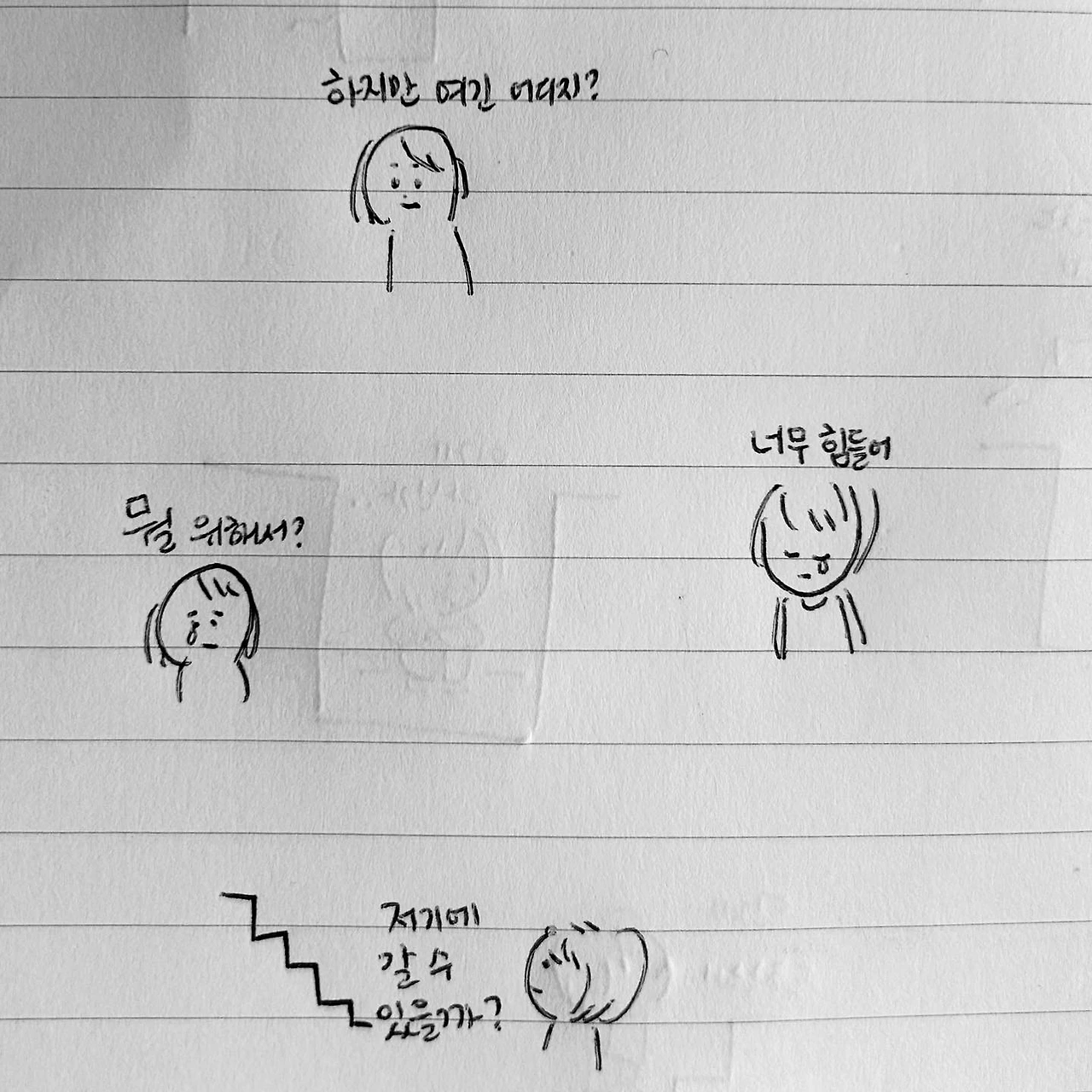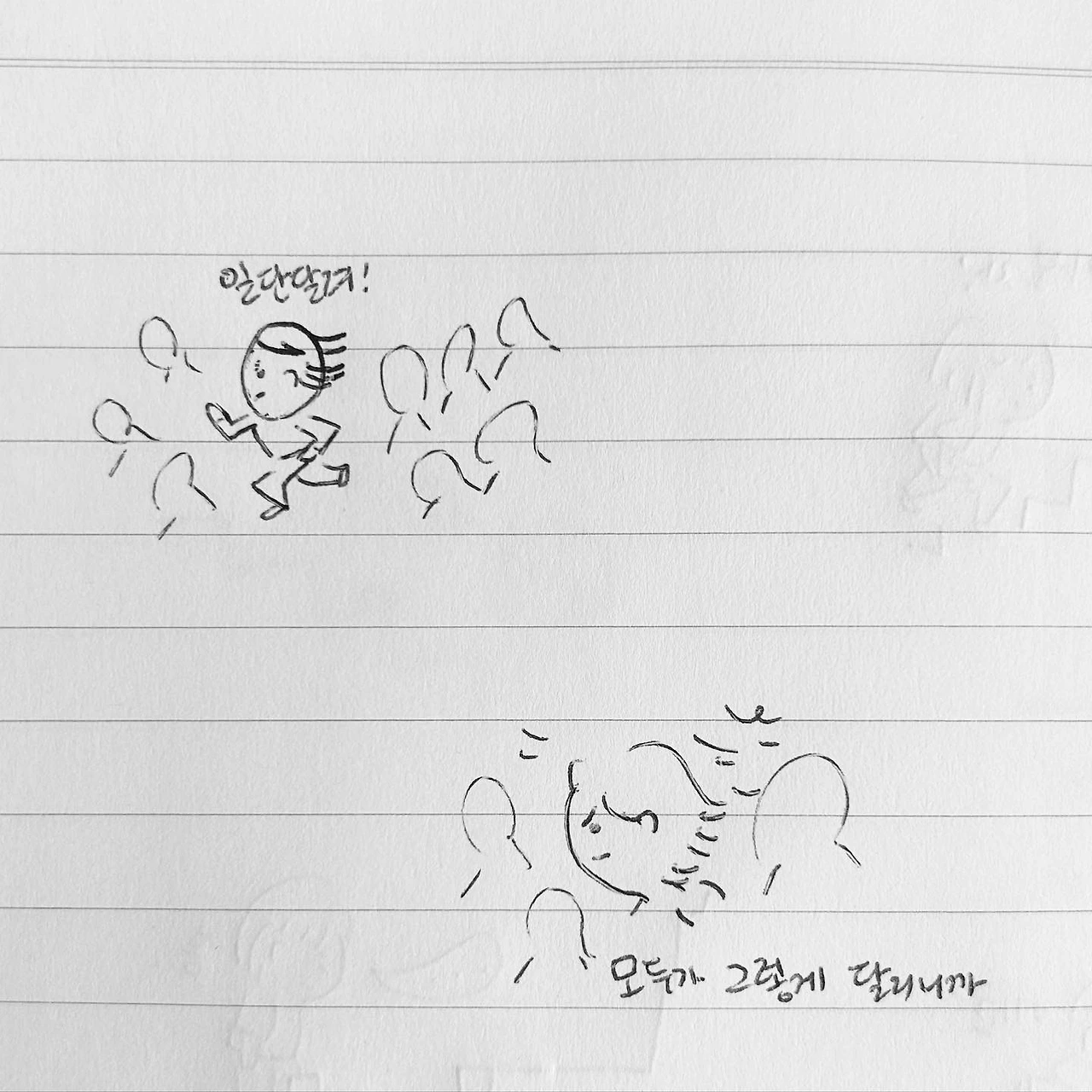 노트를 펼쳐 손이 가는 대로 그림을 그린다. 나에게 위로의 말을 건넨다.