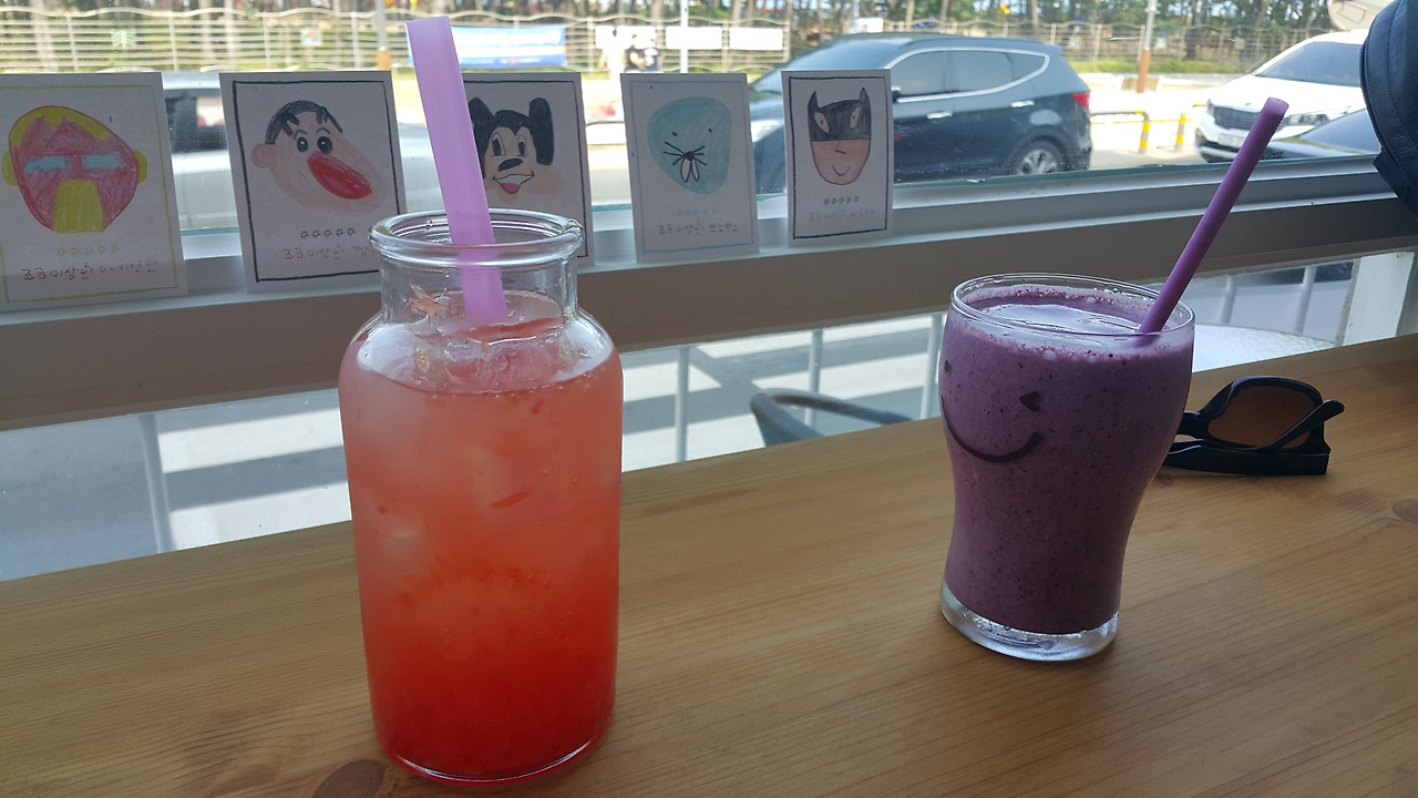 결국 우리는 게으른 여행자답게 10분만에 근처 카페로 피신했다. 1시간 정도 시원한 음료도 마시고, 외장배터리도 충전하면서 시간을 보냈는데 아마 속초에서 보낸 시간 중 가장 여유로운 시간이었을 것이다.