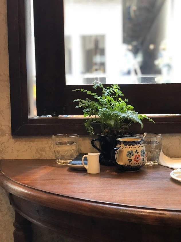 내가 기억한 라떼 맛을 볼 수 있을까 하면서 과감하게 아이스 라떼를 주문했다. 결과는 대성공! 뭐라 설명하기는 힘든데 커피 향이 참 독특했고 이 골목 안쪽까지 들어와서 공사 소음을 견뎌내며 마실만한 가치가 있었다. (오래 버티지는 못했지만...) 아쉬운 건 양이 적다는 것뿐.... 따뜻한 라떼는 디자인이 예쁜 잔에 담겨 나오는데 밑바닥을 보니 폴란드에서 만든 거라고 써져있었다.