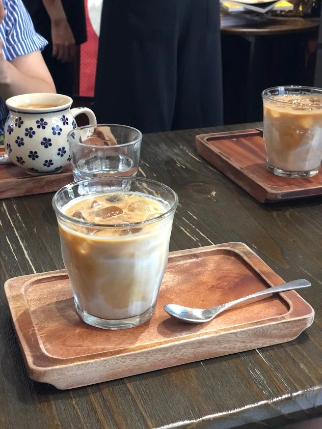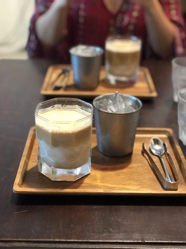 사진을 보니 바브로스 커피와 비슷하게 내부 분위기는 빈티지한 분위기였다. 하나 더 센스가 있었던 건 라떼를 서빙할 때 얼음을 따로 담아주었던 것. 더운 날씨라 얼음이 금방 녹기 때문에 라떼가 밍밍해지는 게 싫은 사람은 얼음을 조금만 넣을 수 있었다. (지금 생각해보니 저 컨테이너 안이 유독 더워서 그런 것도 있었음)