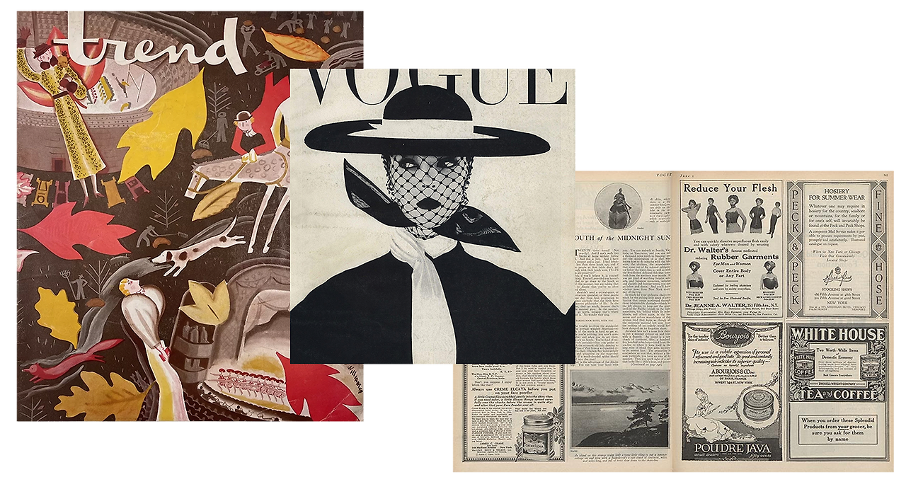 이미지 출처: 왼쪽부터 Trend Of Fashion Magazine 1933 By Richard Tobias / archive.vogue.com_1950 / June 1, 1919 Betty D. Thornley